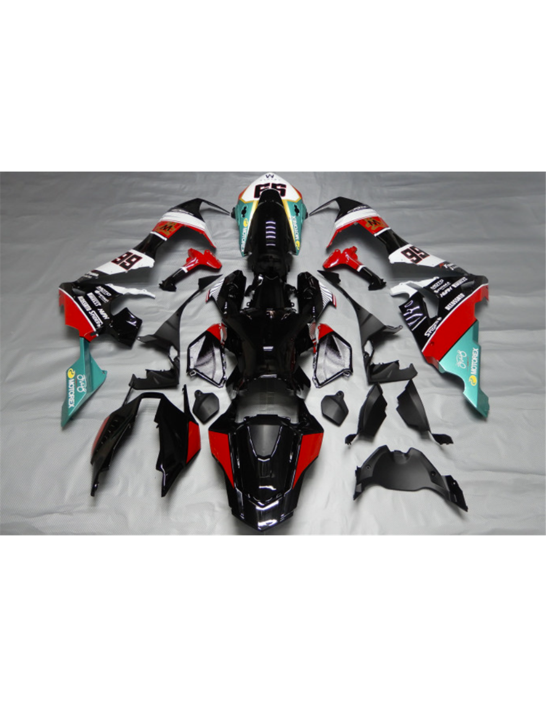 Die Verkleidungssatz enthält: Frontverkleidung, Seitenverkleidung rechts und links, Unterverkleidung, Heck, Kotflügel vorne und alle eventuellen inneren schwarzen Kunststoffe.