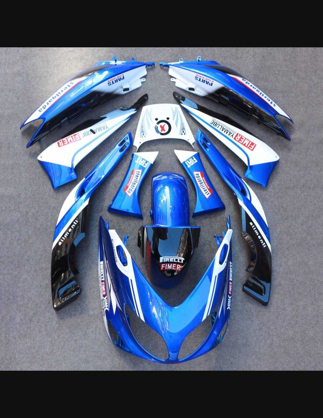 Die Verkleidungssatz enthält: Frontverkleidung, Seitenverkleidung rechts und links, Unterverkleidung, Heck, Kotflügel vorne und alle eventuellen inneren schwarzen Kunststoffe.