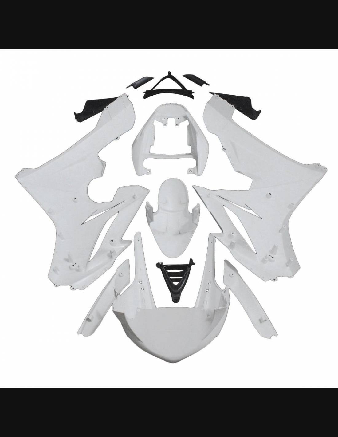 Die Verkleidungssatz enthält: Frontverkleidung, Seitenverkleidung rechts und links, Unterverkleidung, Heck, Kotflügel vorne und alle eventuellen inneren schwarzen Kunststoffe.
