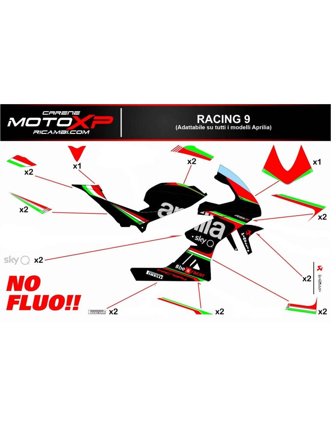 Die Aufkleber werden aus hochwertigen Materialien hergestellt und sind an die Maße des Motorrades, die der Kunde beim Kauf angibt, angepasst. Das Kit enthält alle nicht originalen Aufkleber, um das gewünschte Design zu vervollständigen: für das vordere obere Teil, die rechte und linke Seitenverkleidung, die Bugspoiler, den Höcker, die Schwinge und den vorderen Kotflügel. Es ist auch möglich, Aufkleber selbst zu individualisieren (Farben, Zahlen, Namen usw.). Es ist wichtig, Änderungen in das Feld "Weitere Informationen" zu schreiben. Der Preis des Aufkleber-Kits ändert sich nicht, es sei denn, wesentliche Änderungen (z. B. fluoreszierende Farben). Durch den Kauf akzeptiert man die Verkaufsbedingungen.Sie können sie unter dem Klarlack oder danach kleben. Sofern nicht anders gewünscht, liefern wir den Aufkleber mit dem Schutz.