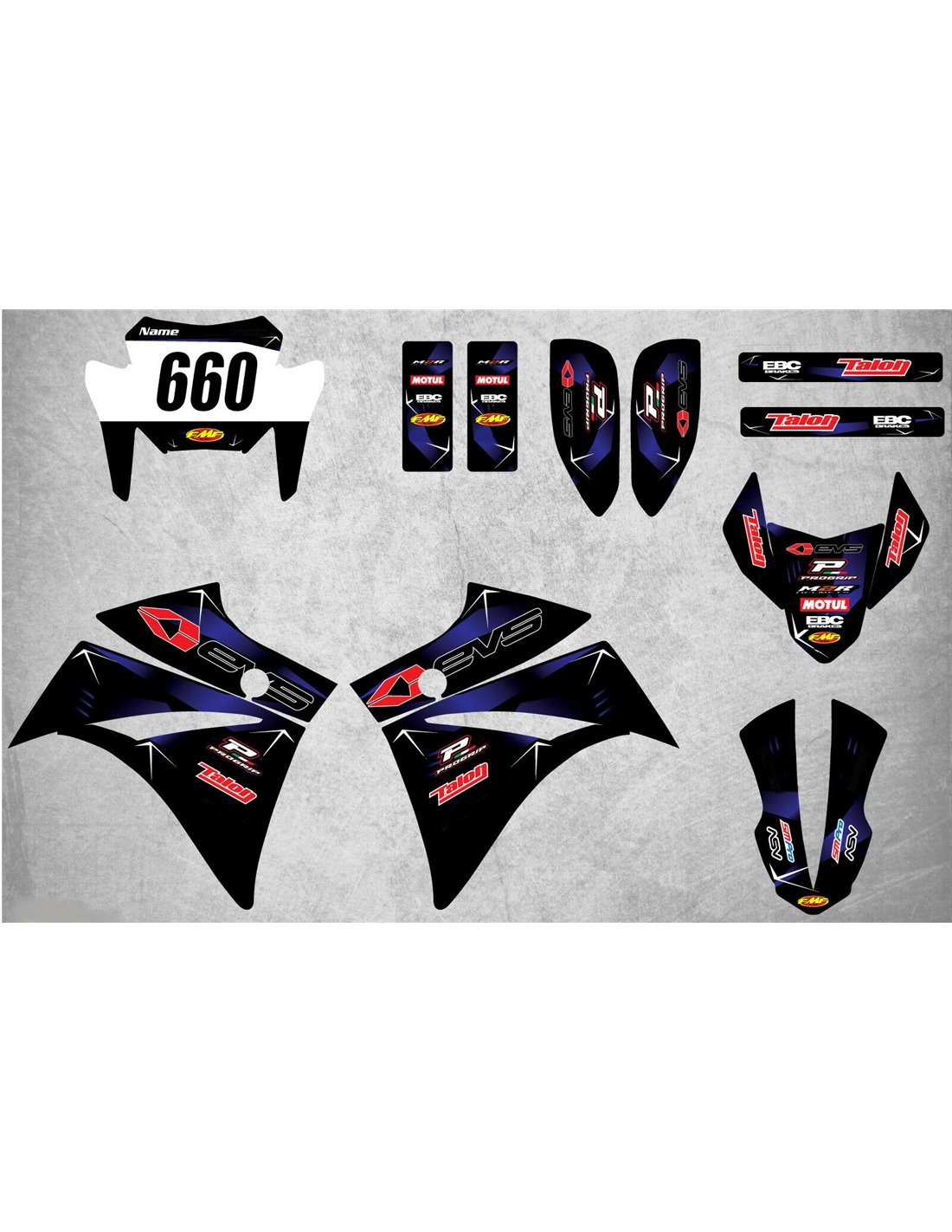 Die Aufkleber werden aus hochwertigen Materialien hergestellt und sind an die Maße des Motorrades, die der Kunde beim Kauf angibt, angepasst. Das Kit enthält alle nicht originalen Aufkleber, um das gewünschte Design zu vervollständigen: für das vordere obere Teil, die rechte und linke Seitenverkleidung, die Bugspoiler, den Höcker, die Schwinge und den vorderen Kotflügel. Es ist auch möglich, Aufkleber selbst zu individualisieren (Farben, Zahlen, Namen usw.). Es ist wichtig, Änderungen in das Feld "Weitere Informationen" zu schreiben. Der Preis des Aufkleber-Kits ändert sich nicht, es sei denn, wesentliche Änderungen (z. B. fluoreszierende Farben). Durch den Kauf akzeptiert man die Verkaufsbedingungen.Sie können sie unter dem Klarlack oder danach kleben. Sofern nicht anders gewünscht, liefern wir den Aufkleber mit dem Schutz.