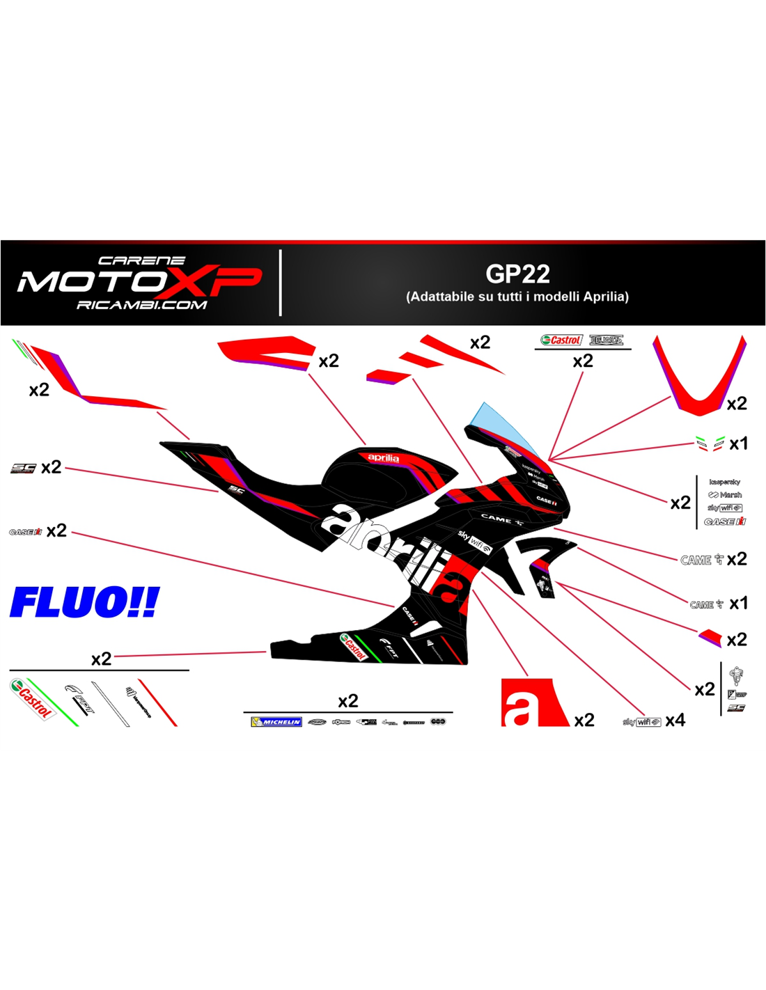 Aufkleber Satz kompatibel mit Aprilia RSV4 2021 - 2024 fluo - MXPKAD16502