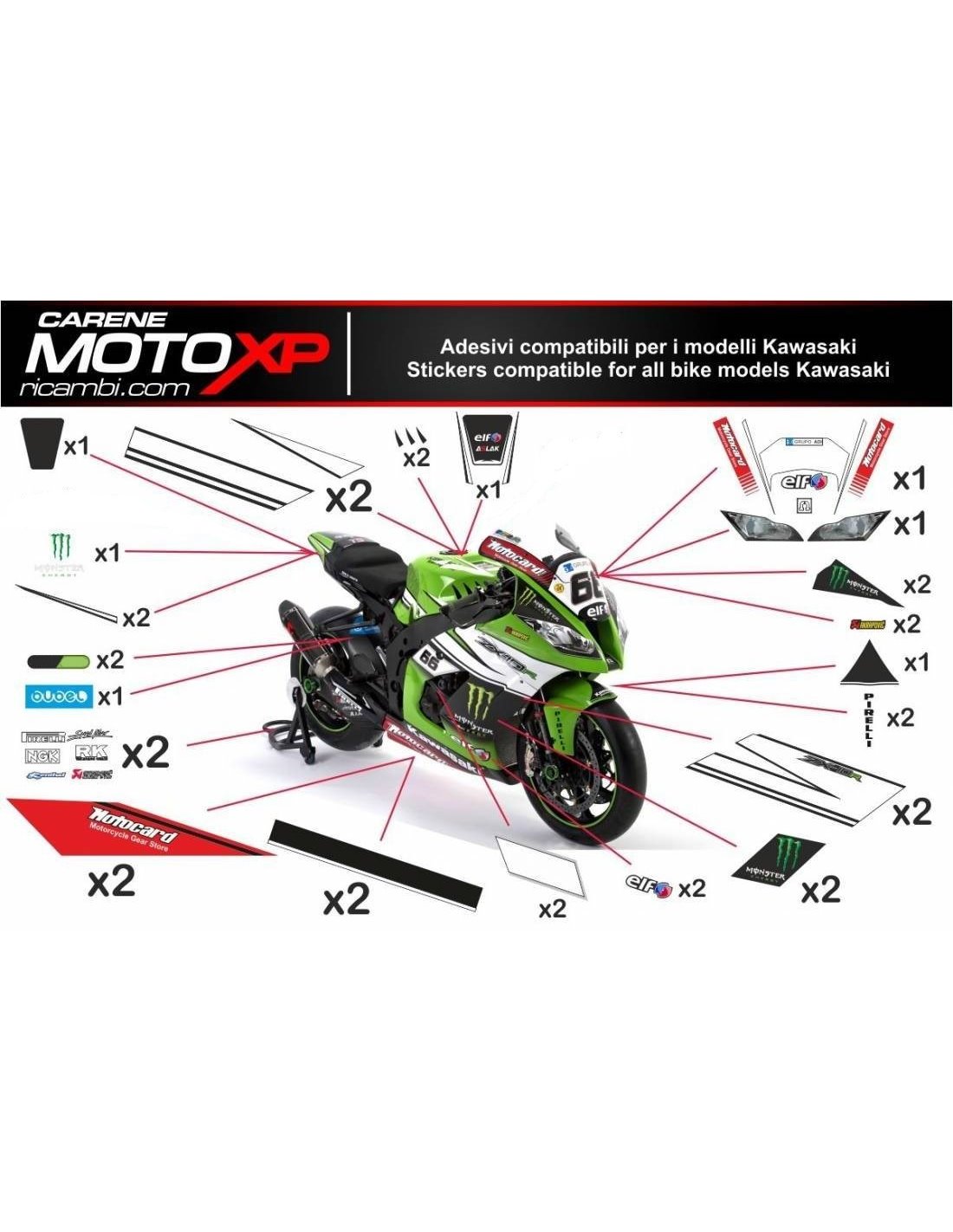 Aufkleber Satz kompatibel mit Kawasaki Zx10R 2008 - 2010 - MXPKAD9867