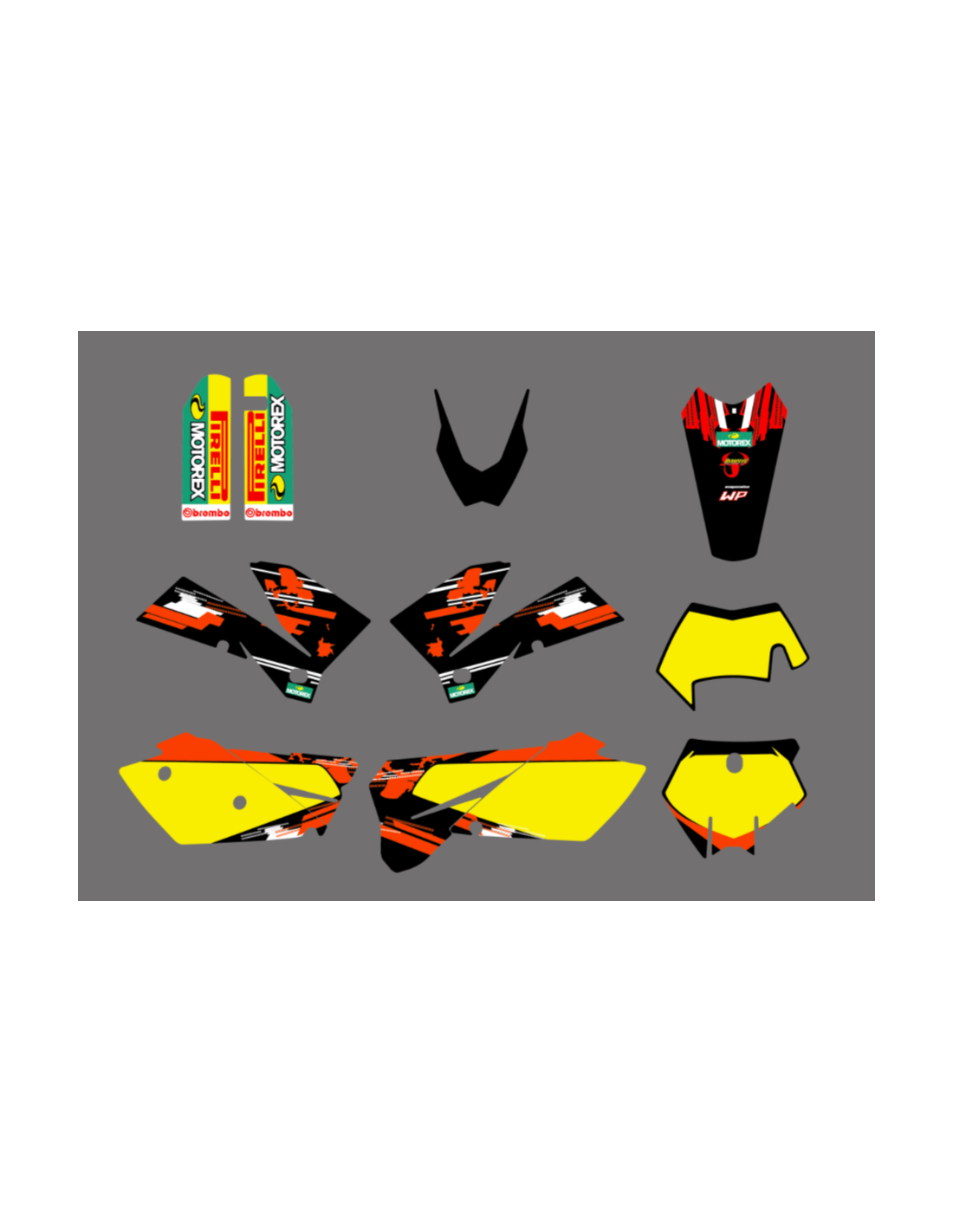 Die von uns hergestellten Aufkleber bestehen aus hochwertigen Crystalmaterialien, die einfach und perfekt an die Kunststoffe des Motorrads des Kunden angepasst werden. Die Widerstandsfähigkeit des Materials ermöglicht es, dass unsere Grafik auch unter den schwierigsten Einsatzbedingungen des Motorrads perfekt haftet. Die Installation, dank der Kanäle für die Luftabgabe, lässt Sie die Aufkleber reibungslos und ohne Blasen anbringen. Wir verwenden für den Druck Maschinen der neuesten Generation, damit wir leuchtende Farben und hochwertige Farbtöne drucken können. Wir haben die Aufkleber mit einer Schutzschicht versehen, damit sie im Laufe der Jahre immer hell bleiben und vor Wasser und Schmutz geschützt sind. Es ist möglich, die Aufkleber nach Ihren Wünschen anzupassen. Sie können Techniker-Sponsoren hinzufügen, entfernen oder ändern, eine benutzerdefinierte Startnummer oder Ihren eigenen Namen hinzufügen. Alle Änderungen können Sie während des Kaufs im Feld „Benutzeranpassung“ auf der Website angeben. Wir beschränken uns nicht nur auf die Grafiken auf unserer Website, Sie können uns per E-Mail oder WhatsApp ein Bild von einem Design senden, das wir nicht haben, damit wir Ihnen ein Angebot unterbreiten und es dann erstellen können. Durch den Kauf akzeptiert man die Verkaufsbedingungen.
