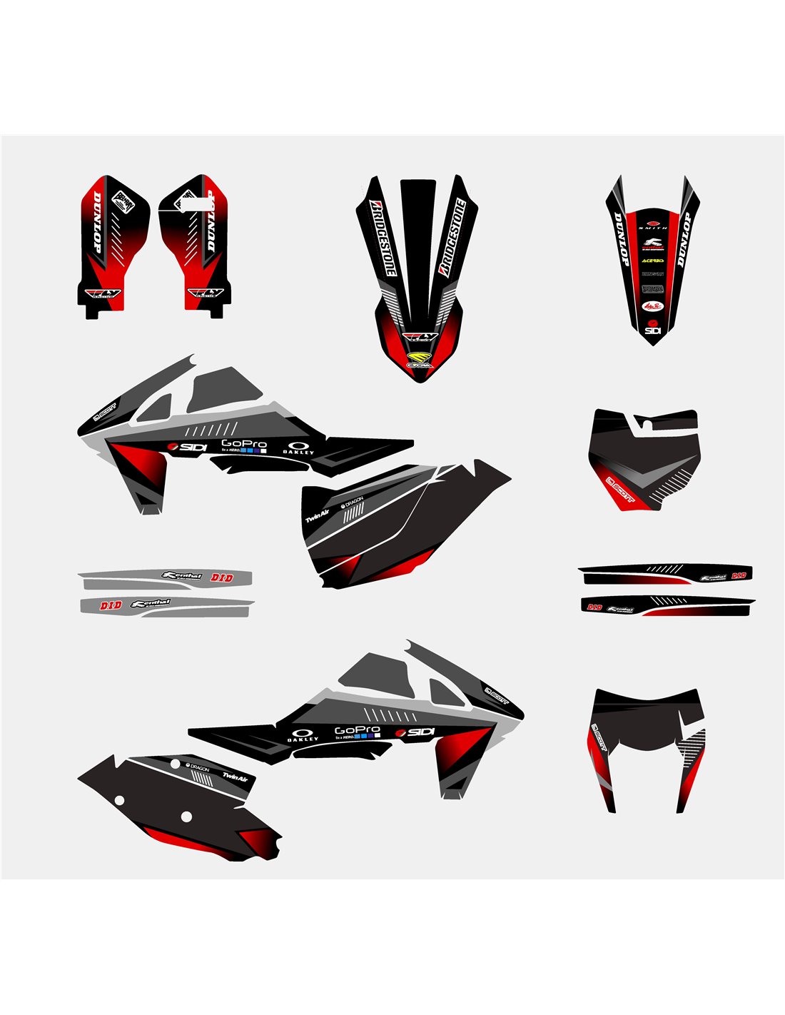 Die von uns hergestellten Aufkleber bestehen aus hochwertigen Crystalmaterialien, die einfach und perfekt an die Kunststoffe des Motorrads des Kunden angepasst werden. Die Widerstandsfähigkeit des Materials ermöglicht es, dass unsere Grafik auch unter den schwierigsten Einsatzbedingungen des Motorrads perfekt haftet. Die Installation, dank der Kanäle für die Luftabgabe, lässt Sie die Aufkleber reibungslos und ohne Blasen anbringen. Wir verwenden für den Druck Maschinen der neuesten Generation, damit wir leuchtende Farben und hochwertige Farbtöne drucken können. Wir haben die Aufkleber mit einer Schutzschicht versehen, damit sie im Laufe der Jahre immer hell bleiben und vor Wasser und Schmutz geschützt sind. Es ist möglich, die Aufkleber nach Ihren Wünschen anzupassen. Sie können Techniker-Sponsoren hinzufügen, entfernen oder ändern, eine benutzerdefinierte Startnummer oder Ihren eigenen Namen hinzufügen. Alle Änderungen können Sie während des Kaufs im Feld „Benutzeranpassung“ auf der Website angeben. Wir beschränken uns nicht nur auf die Grafiken auf unserer Website, Sie können uns per E-Mail oder WhatsApp ein Bild von einem Design senden, das wir nicht haben, damit wir Ihnen ein Angebot unterbreiten und es dann erstellen können. Durch den Kauf akzeptiert man die Verkaufsbedingungen.