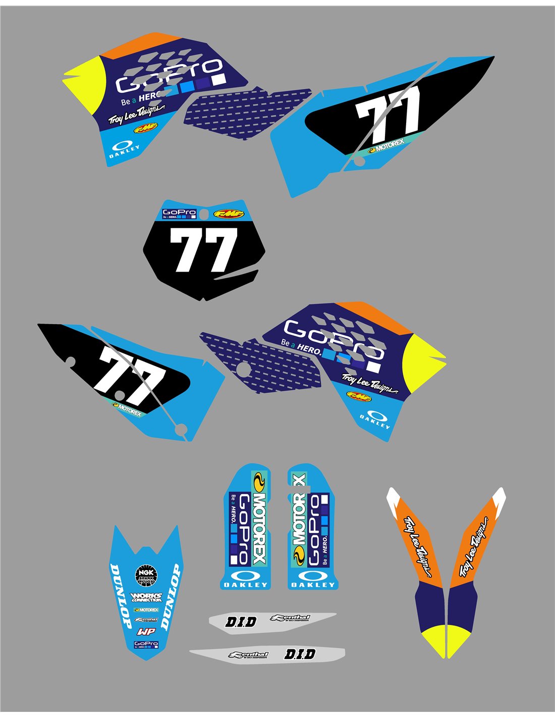 Die von uns hergestellten Aufkleber bestehen aus hochwertigen Crystalmaterialien, die einfach und perfekt an die Kunststoffe des Motorrads des Kunden angepasst werden. Die Widerstandsfähigkeit des Materials ermöglicht es, dass unsere Grafik auch unter den schwierigsten Einsatzbedingungen des Motorrads perfekt haftet. Die Installation, dank der Kanäle für die Luftabgabe, lässt Sie die Aufkleber reibungslos und ohne Blasen anbringen. Wir verwenden für den Druck Maschinen der neuesten Generation, damit wir leuchtende Farben und hochwertige Farbtöne drucken können. Wir haben die Aufkleber mit einer Schutzschicht versehen, damit sie im Laufe der Jahre immer hell bleiben und vor Wasser und Schmutz geschützt sind. Es ist möglich, die Aufkleber nach Ihren Wünschen anzupassen. Sie können Techniker-Sponsoren hinzufügen, entfernen oder ändern, eine benutzerdefinierte Startnummer oder Ihren eigenen Namen hinzufügen. Alle Änderungen können Sie während des Kaufs im Feld „Benutzeranpassung“ auf der Website angeben. Wir beschränken uns nicht nur auf die Grafiken auf unserer Website, Sie können uns per E-Mail oder WhatsApp ein Bild von einem Design senden, das wir nicht haben, damit wir Ihnen ein Angebot unterbreiten und es dann erstellen können. Durch den Kauf akzeptiert man die Verkaufsbedingungen.