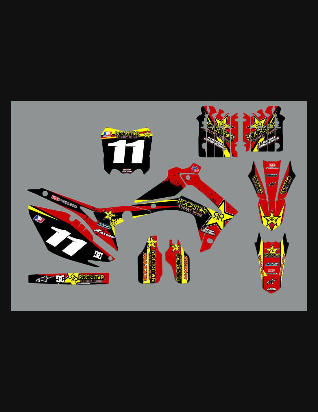 Die von uns hergestellten Aufkleber bestehen aus hochwertigen Crystalmaterialien, die einfach und perfekt an die Kunststoffe des Motorrads des Kunden angepasst werden. Die Widerstandsfähigkeit des Materials ermöglicht es, dass unsere Grafik auch unter den schwierigsten Einsatzbedingungen des Motorrads perfekt haftet. Die Installation, dank der Kanäle für die Luftabgabe, lässt Sie die Aufkleber reibungslos und ohne Blasen anbringen. Wir verwenden für den Druck Maschinen der neuesten Generation, damit wir leuchtende Farben und hochwertige Farbtöne drucken können. Wir haben die Aufkleber mit einer Schutzschicht versehen, damit sie im Laufe der Jahre immer hell bleiben und vor Wasser und Schmutz geschützt sind. Es ist möglich, die Aufkleber nach Ihren Wünschen anzupassen. Sie können Techniker-Sponsoren hinzufügen, entfernen oder ändern, eine benutzerdefinierte Startnummer oder Ihren eigenen Namen hinzufügen. Alle Änderungen können Sie während des Kaufs im Feld „Benutzeranpassung“ auf der Website angeben. Wir beschränken uns nicht nur auf die Grafiken auf unserer Website, Sie können uns per E-Mail oder WhatsApp ein Bild von einem Design senden, das wir nicht haben, damit wir Ihnen ein Angebot unterbreiten und es dann erstellen können. Durch den Kauf akzeptiert man die Verkaufsbedingungen.