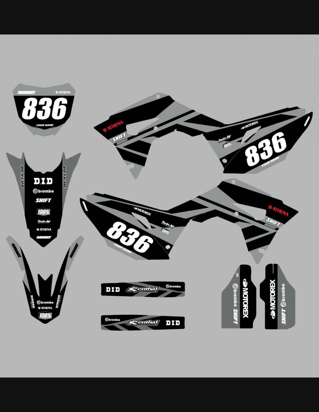 Die von uns hergestellten Aufkleber bestehen aus hochwertigen Crystalmaterialien, die einfach und perfekt an die Kunststoffe des Motorrads des Kunden angepasst werden. Die Widerstandsfähigkeit des Materials ermöglicht es, dass unsere Grafik auch unter den schwierigsten Einsatzbedingungen des Motorrads perfekt haftet. Die Installation, dank der Kanäle für die Luftabgabe, lässt Sie die Aufkleber reibungslos und ohne Blasen anbringen. Wir verwenden für den Druck Maschinen der neuesten Generation, damit wir leuchtende Farben und hochwertige Farbtöne drucken können. Wir haben die Aufkleber mit einer Schutzschicht versehen, damit sie im Laufe der Jahre immer hell bleiben und vor Wasser und Schmutz geschützt sind. Es ist möglich, die Aufkleber nach Ihren Wünschen anzupassen. Sie können Techniker-Sponsoren hinzufügen, entfernen oder ändern, eine benutzerdefinierte Startnummer oder Ihren eigenen Namen hinzufügen. Alle Änderungen können Sie während des Kaufs im Feld „Benutzeranpassung“ auf der Website angeben. Wir beschränken uns nicht nur auf die Grafiken auf unserer Website, Sie können uns per E-Mail oder WhatsApp ein Bild von einem Design senden, das wir nicht haben, damit wir Ihnen ein Angebot unterbreiten und es dann erstellen können. Durch den Kauf akzeptiert man die Verkaufsbedingungen.