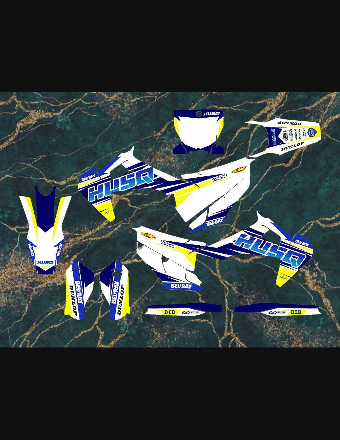 Die von uns hergestellten Aufkleber bestehen aus hochwertigen Crystalmaterialien, die einfach und perfekt an die Kunststoffe des Motorrads des Kunden angepasst werden. Die Widerstandsfähigkeit des Materials ermöglicht es, dass unsere Grafik auch unter den schwierigsten Einsatzbedingungen des Motorrads perfekt haftet. Die Installation, dank der Kanäle für die Luftabgabe, lässt Sie die Aufkleber reibungslos und ohne Blasen anbringen. Wir verwenden für den Druck Maschinen der neuesten Generation, damit wir leuchtende Farben und hochwertige Farbtöne drucken können. Wir haben die Aufkleber mit einer Schutzschicht versehen, damit sie im Laufe der Jahre immer hell bleiben und vor Wasser und Schmutz geschützt sind. Es ist möglich, die Aufkleber nach Ihren Wünschen anzupassen. Sie können Techniker-Sponsoren hinzufügen, entfernen oder ändern, eine benutzerdefinierte Startnummer oder Ihren eigenen Namen hinzufügen. Alle Änderungen können Sie während des Kaufs im Feld „Benutzeranpassung“ auf der Website angeben. Wir beschränken uns nicht nur auf die Grafiken auf unserer Website, Sie können uns per E-Mail oder WhatsApp ein Bild von einem Design senden, das wir nicht haben, damit wir Ihnen ein Angebot unterbreiten und es dann erstellen können. Durch den Kauf akzeptiert man die Verkaufsbedingungen.