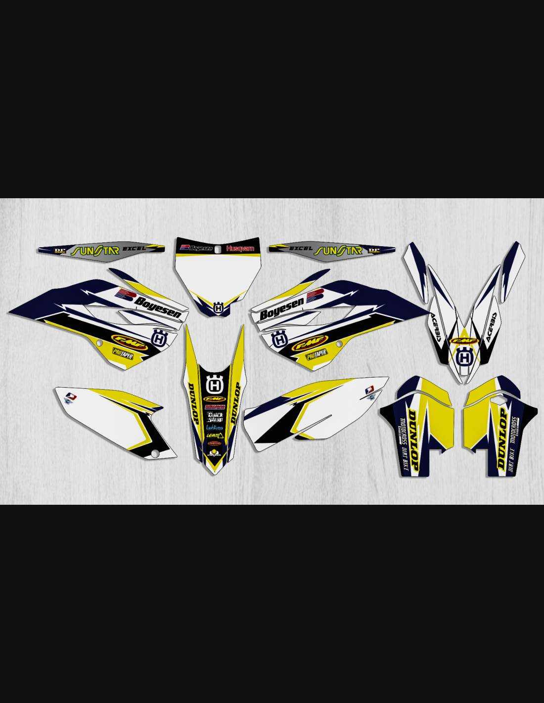 Die von uns hergestellten Aufkleber bestehen aus hochwertigen Crystalmaterialien, die einfach und perfekt an die Kunststoffe des Motorrads des Kunden angepasst werden. Die Widerstandsfähigkeit des Materials ermöglicht es, dass unsere Grafik auch unter den schwierigsten Einsatzbedingungen des Motorrads perfekt haftet. Die Installation, dank der Kanäle für die Luftabgabe, lässt Sie die Aufkleber reibungslos und ohne Blasen anbringen. Wir verwenden für den Druck Maschinen der neuesten Generation, damit wir leuchtende Farben und hochwertige Farbtöne drucken können. Wir haben die Aufkleber mit einer Schutzschicht versehen, damit sie im Laufe der Jahre immer hell bleiben und vor Wasser und Schmutz geschützt sind. Es ist möglich, die Aufkleber nach Ihren Wünschen anzupassen. Sie können Techniker-Sponsoren hinzufügen, entfernen oder ändern, eine benutzerdefinierte Startnummer oder Ihren eigenen Namen hinzufügen. Alle Änderungen können Sie während des Kaufs im Feld „Benutzeranpassung“ auf der Website angeben. Wir beschränken uns nicht nur auf die Grafiken auf unserer Website, Sie können uns per E-Mail oder WhatsApp ein Bild von einem Design senden, das wir nicht haben, damit wir Ihnen ein Angebot unterbreiten und es dann erstellen können. Durch den Kauf akzeptiert man die Verkaufsbedingungen.