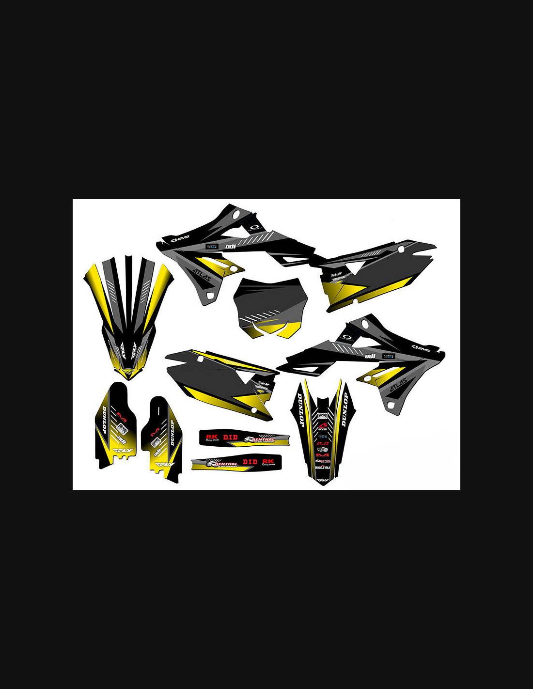 Die von uns hergestellten Aufkleber bestehen aus hochwertigen Crystalmaterialien, die einfach und perfekt an die Kunststoffe des Motorrads des Kunden angepasst werden. Die Widerstandsfähigkeit des Materials ermöglicht es, dass unsere Grafik auch unter den schwierigsten Einsatzbedingungen des Motorrads perfekt haftet. Die Installation, dank der Kanäle für die Luftabgabe, lässt Sie die Aufkleber reibungslos und ohne Blasen anbringen. Wir verwenden für den Druck Maschinen der neuesten Generation, damit wir leuchtende Farben und hochwertige Farbtöne drucken können. Wir haben die Aufkleber mit einer Schutzschicht versehen, damit sie im Laufe der Jahre immer hell bleiben und vor Wasser und Schmutz geschützt sind. Es ist möglich, die Aufkleber nach Ihren Wünschen anzupassen. Sie können Techniker-Sponsoren hinzufügen, entfernen oder ändern, eine benutzerdefinierte Startnummer oder Ihren eigenen Namen hinzufügen. Alle Änderungen können Sie während des Kaufs im Feld „Benutzeranpassung“ auf der Website angeben. Wir beschränken uns nicht nur auf die Grafiken auf unserer Website, Sie können uns per E-Mail oder WhatsApp ein Bild von einem Design senden, das wir nicht haben, damit wir Ihnen ein Angebot unterbreiten und es dann erstellen können. Durch den Kauf akzeptiert man die Verkaufsbedingungen.