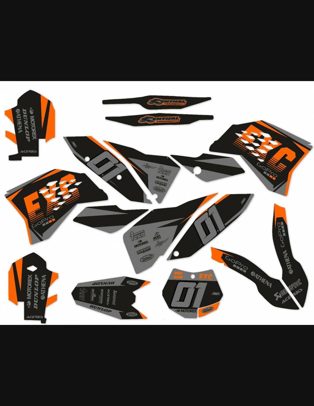 Die von uns hergestellten Aufkleber bestehen aus hochwertigen Crystalmaterialien, die einfach und perfekt an die Kunststoffe des Motorrads des Kunden angepasst werden. Die Widerstandsfähigkeit des Materials ermöglicht es, dass unsere Grafik auch unter den schwierigsten Einsatzbedingungen des Motorrads perfekt haftet. Die Installation, dank der Kanäle für die Luftabgabe, lässt Sie die Aufkleber reibungslos und ohne Blasen anbringen. Wir verwenden für den Druck Maschinen der neuesten Generation, damit wir leuchtende Farben und hochwertige Farbtöne drucken können. Wir haben die Aufkleber mit einer Schutzschicht versehen, damit sie im Laufe der Jahre immer hell bleiben und vor Wasser und Schmutz geschützt sind. Es ist möglich, die Aufkleber nach Ihren Wünschen anzupassen. Sie können Techniker-Sponsoren hinzufügen, entfernen oder ändern, eine benutzerdefinierte Startnummer oder Ihren eigenen Namen hinzufügen. Alle Änderungen können Sie während des Kaufs im Feld „Benutzeranpassung“ auf der Website angeben. Wir beschränken uns nicht nur auf die Grafiken auf unserer Website, Sie können uns per E-Mail oder WhatsApp ein Bild von einem Design senden, das wir nicht haben, damit wir Ihnen ein Angebot unterbreiten und es dann erstellen können. Durch den Kauf akzeptiert man die Verkaufsbedingungen.
