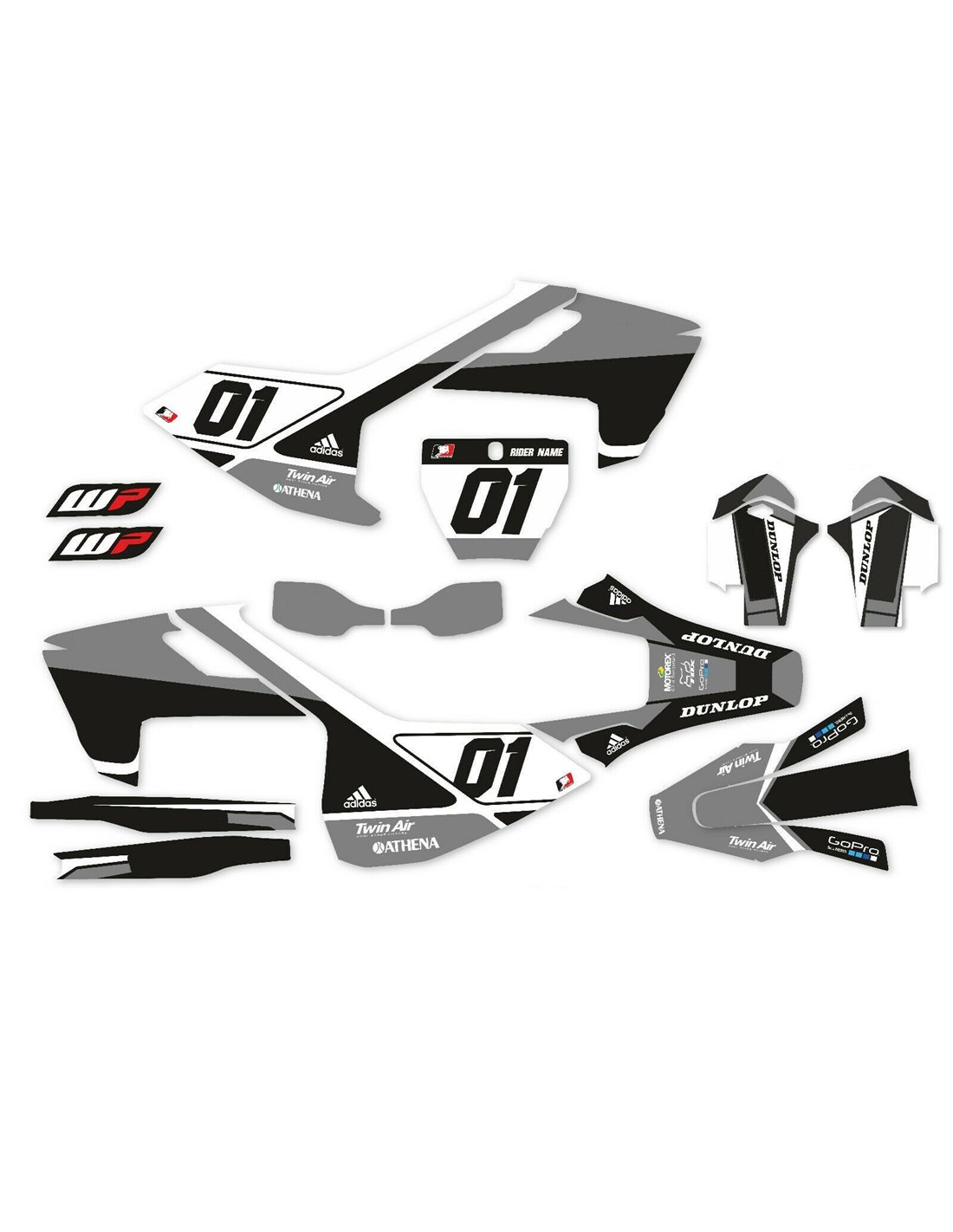 Die von uns hergestellten Aufkleber bestehen aus hochwertigen Crystalmaterialien, die einfach und perfekt an die Kunststoffe des Motorrads des Kunden angepasst werden. Die Widerstandsfähigkeit des Materials ermöglicht es, dass unsere Grafik auch unter den schwierigsten Einsatzbedingungen des Motorrads perfekt haftet. Die Installation, dank der Kanäle für die Luftabgabe, lässt Sie die Aufkleber reibungslos und ohne Blasen anbringen. Wir verwenden für den Druck Maschinen der neuesten Generation, damit wir leuchtende Farben und hochwertige Farbtöne drucken können. Wir haben die Aufkleber mit einer Schutzschicht versehen, damit sie im Laufe der Jahre immer hell bleiben und vor Wasser und Schmutz geschützt sind. Es ist möglich, die Aufkleber nach Ihren Wünschen anzupassen. Sie können Techniker-Sponsoren hinzufügen, entfernen oder ändern, eine benutzerdefinierte Startnummer oder Ihren eigenen Namen hinzufügen. Alle Änderungen können Sie während des Kaufs im Feld „Benutzeranpassung“ auf der Website angeben. Wir beschränken uns nicht nur auf die Grafiken auf unserer Website, Sie können uns per E-Mail oder WhatsApp ein Bild von einem Design senden, das wir nicht haben, damit wir Ihnen ein Angebot unterbreiten und es dann erstellen können. Durch den Kauf akzeptiert man die Verkaufsbedingungen.