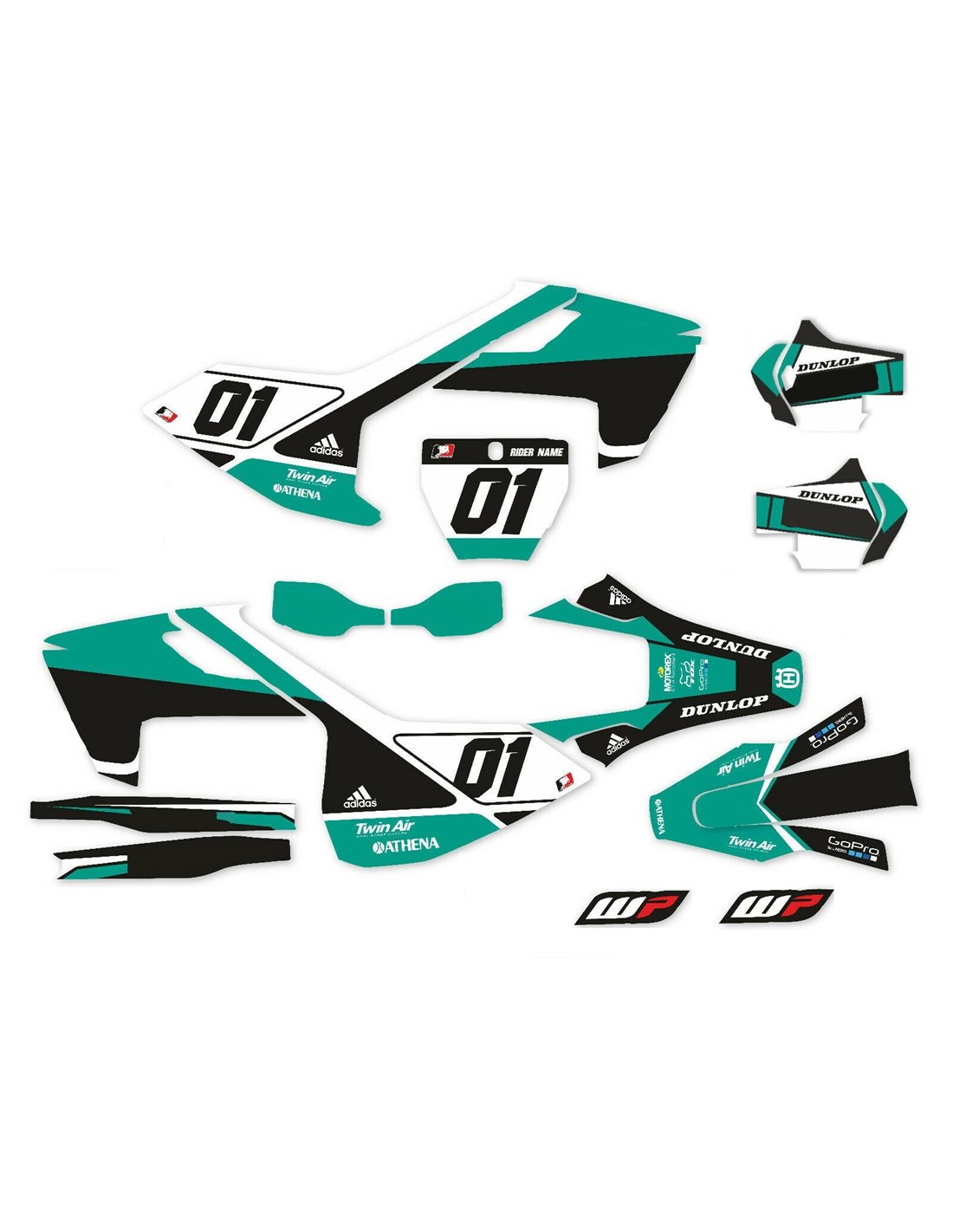 Die von uns hergestellten Aufkleber bestehen aus hochwertigen Crystalmaterialien, die einfach und perfekt an die Kunststoffe des Motorrads des Kunden angepasst werden. Die Widerstandsfähigkeit des Materials ermöglicht es, dass unsere Grafik auch unter den schwierigsten Einsatzbedingungen des Motorrads perfekt haftet. Die Installation, dank der Kanäle für die Luftabgabe, lässt Sie die Aufkleber reibungslos und ohne Blasen anbringen. Wir verwenden für den Druck Maschinen der neuesten Generation, damit wir leuchtende Farben und hochwertige Farbtöne drucken können. Wir haben die Aufkleber mit einer Schutzschicht versehen, damit sie im Laufe der Jahre immer hell bleiben und vor Wasser und Schmutz geschützt sind. Es ist möglich, die Aufkleber nach Ihren Wünschen anzupassen. Sie können Techniker-Sponsoren hinzufügen, entfernen oder ändern, eine benutzerdefinierte Startnummer oder Ihren eigenen Namen hinzufügen. Alle Änderungen können Sie während des Kaufs im Feld „Benutzeranpassung“ auf der Website angeben. Wir beschränken uns nicht nur auf die Grafiken auf unserer Website, Sie können uns per E-Mail oder WhatsApp ein Bild von einem Design senden, das wir nicht haben, damit wir Ihnen ein Angebot unterbreiten und es dann erstellen können. Durch den Kauf akzeptiert man die Verkaufsbedingungen.