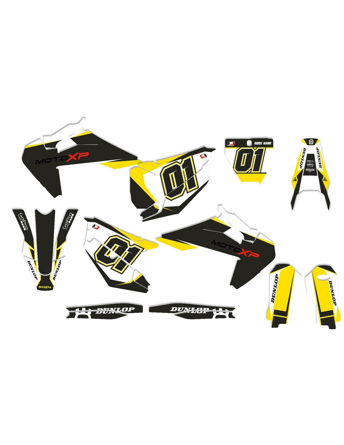 Die von uns hergestellten Aufkleber bestehen aus hochwertigen Crystalmaterialien, die einfach und perfekt an die Kunststoffe des Motorrads des Kunden angepasst werden. Die Widerstandsfähigkeit des Materials ermöglicht es, dass unsere Grafik auch unter den schwierigsten Einsatzbedingungen des Motorrads perfekt haftet. Die Installation, dank der Kanäle für die Luftabgabe, lässt Sie die Aufkleber reibungslos und ohne Blasen anbringen. Wir verwenden für den Druck Maschinen der neuesten Generation, damit wir leuchtende Farben und hochwertige Farbtöne drucken können. Wir haben die Aufkleber mit einer Schutzschicht versehen, damit sie im Laufe der Jahre immer hell bleiben und vor Wasser und Schmutz geschützt sind. Es ist möglich, die Aufkleber nach Ihren Wünschen anzupassen. Sie können Techniker-Sponsoren hinzufügen, entfernen oder ändern, eine benutzerdefinierte Startnummer oder Ihren eigenen Namen hinzufügen. Alle Änderungen können Sie während des Kaufs im Feld „Benutzeranpassung“ auf der Website angeben. Wir beschränken uns nicht nur auf die Grafiken auf unserer Website, Sie können uns per E-Mail oder WhatsApp ein Bild von einem Design senden, das wir nicht haben, damit wir Ihnen ein Angebot unterbreiten und es dann erstellen können. Durch den Kauf akzeptiert man die Verkaufsbedingungen.