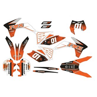 Die von uns hergestellten Aufkleber bestehen aus hochwertigen Crystalmaterialien, die einfach und perfekt an die Kunststoffe des Motorrads des Kunden angepasst werden. Die Widerstandsfähigkeit des Materials ermöglicht es, dass unsere Grafik auch unter den schwierigsten Einsatzbedingungen des Motorrads perfekt haftet. Die Installation, dank der Kanäle für die Luftabgabe, lässt Sie die Aufkleber reibungslos und ohne Blasen anbringen. Wir verwenden für den Druck Maschinen der neuesten Generation, damit wir leuchtende Farben und hochwertige Farbtöne drucken können. Wir haben die Aufkleber mit einer Schutzschicht versehen, damit sie im Laufe der Jahre immer hell bleiben und vor Wasser und Schmutz geschützt sind. Es ist möglich, die Aufkleber nach Ihren Wünschen anzupassen. Sie können Techniker-Sponsoren hinzufügen, entfernen oder ändern, eine benutzerdefinierte Startnummer oder Ihren eigenen Namen hinzufügen. Alle Änderungen können Sie während des Kaufs im Feld „Benutzeranpassung“ auf der Website angeben. Wir beschränken uns nicht nur auf die Grafiken auf unserer Website, Sie können uns per E-Mail oder WhatsApp ein Bild von einem Design senden, das wir nicht haben, damit wir Ihnen ein Angebot unterbreiten und es dann erstellen können. Durch den Kauf akzeptiert man die Verkaufsbedingungen.