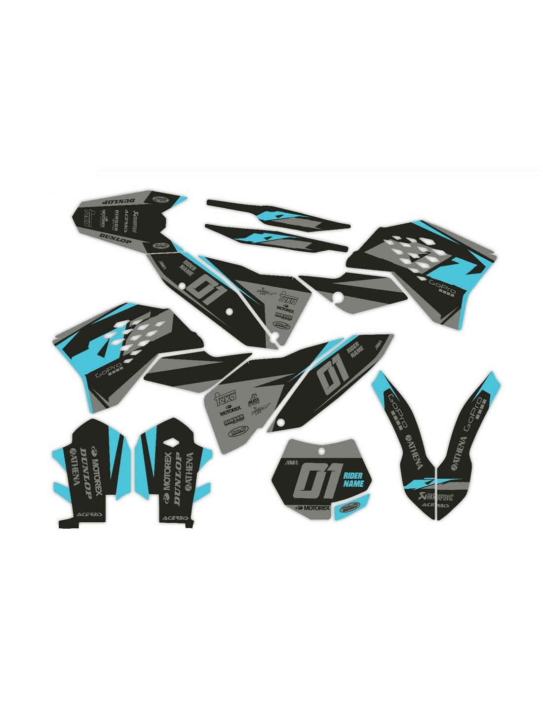 Die von uns hergestellten Aufkleber bestehen aus hochwertigen Crystalmaterialien, die einfach und perfekt an die Kunststoffe des Motorrads des Kunden angepasst werden. Die Widerstandsfähigkeit des Materials ermöglicht es, dass unsere Grafik auch unter den schwierigsten Einsatzbedingungen des Motorrads perfekt haftet. Die Installation, dank der Kanäle für die Luftabgabe, lässt Sie die Aufkleber reibungslos und ohne Blasen anbringen. Wir verwenden für den Druck Maschinen der neuesten Generation, damit wir leuchtende Farben und hochwertige Farbtöne drucken können. Wir haben die Aufkleber mit einer Schutzschicht versehen, damit sie im Laufe der Jahre immer hell bleiben und vor Wasser und Schmutz geschützt sind. Es ist möglich, die Aufkleber nach Ihren Wünschen anzupassen. Sie können Techniker-Sponsoren hinzufügen, entfernen oder ändern, eine benutzerdefinierte Startnummer oder Ihren eigenen Namen hinzufügen. Alle Änderungen können Sie während des Kaufs im Feld „Benutzeranpassung“ auf der Website angeben. Wir beschränken uns nicht nur auf die Grafiken auf unserer Website, Sie können uns per E-Mail oder WhatsApp ein Bild von einem Design senden, das wir nicht haben, damit wir Ihnen ein Angebot unterbreiten und es dann erstellen können. Durch den Kauf akzeptiert man die Verkaufsbedingungen.