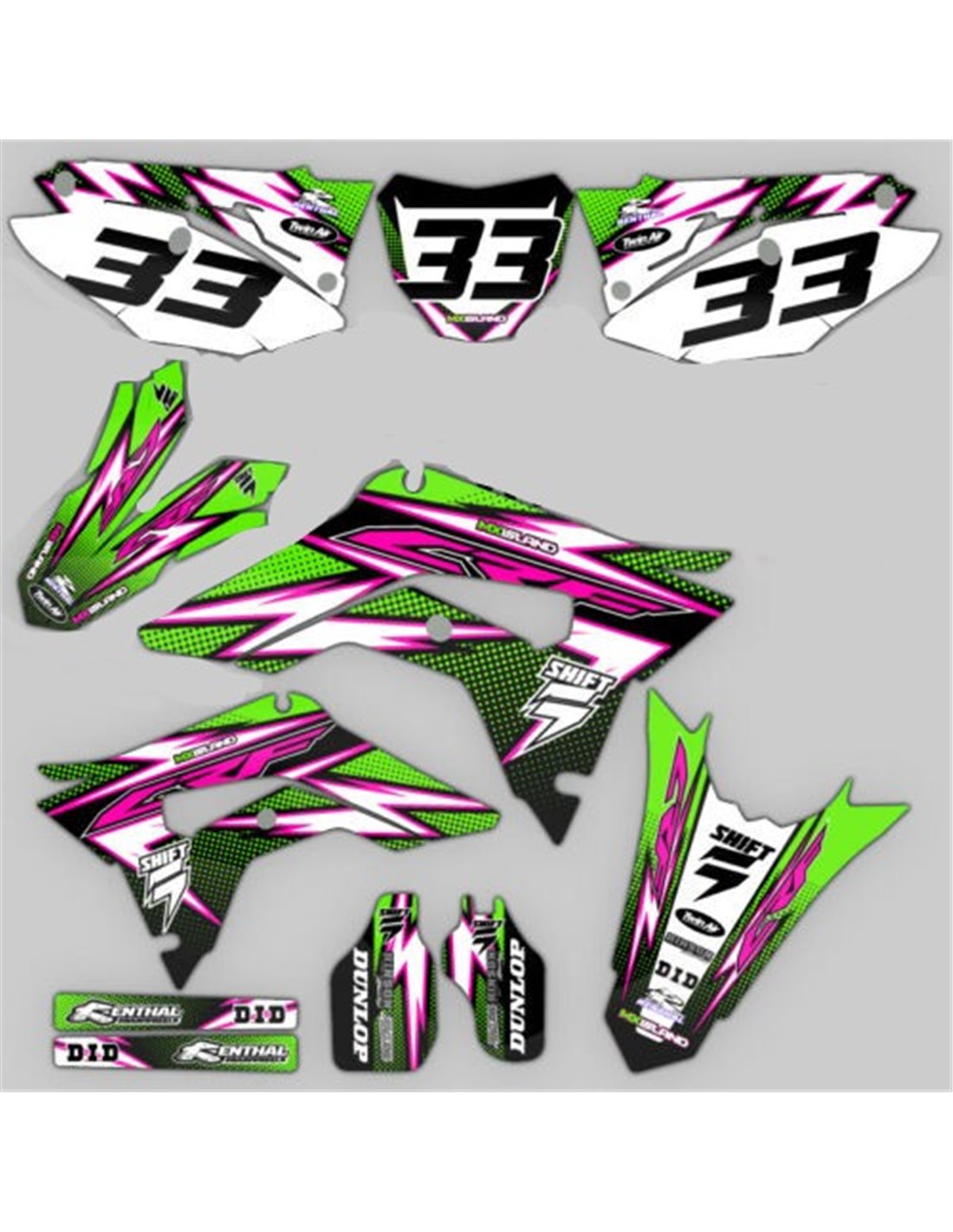 Die von uns hergestellten Aufkleber bestehen aus hochwertigen Crystalmaterialien, die einfach und perfekt an die Kunststoffe des Motorrads des Kunden angepasst werden. Die Widerstandsfähigkeit des Materials ermöglicht es, dass unsere Grafik auch unter den schwierigsten Einsatzbedingungen des Motorrads perfekt haftet. Die Installation, dank der Kanäle für die Luftabgabe, lässt Sie die Aufkleber reibungslos und ohne Blasen anbringen. Wir verwenden für den Druck Maschinen der neuesten Generation, damit wir leuchtende Farben und hochwertige Farbtöne drucken können. Wir haben die Aufkleber mit einer Schutzschicht versehen, damit sie im Laufe der Jahre immer hell bleiben und vor Wasser und Schmutz geschützt sind. Es ist möglich, die Aufkleber nach Ihren Wünschen anzupassen. Sie können Techniker-Sponsoren hinzufügen, entfernen oder ändern, eine benutzerdefinierte Startnummer oder Ihren eigenen Namen hinzufügen. Alle Änderungen können Sie während des Kaufs im Feld „Benutzeranpassung“ auf der Website angeben. Wir beschränken uns nicht nur auf die Grafiken auf unserer Website, Sie können uns per E-Mail oder WhatsApp ein Bild von einem Design senden, das wir nicht haben, damit wir Ihnen ein Angebot unterbreiten und es dann erstellen können. Durch den Kauf akzeptiert man die Verkaufsbedingungen.