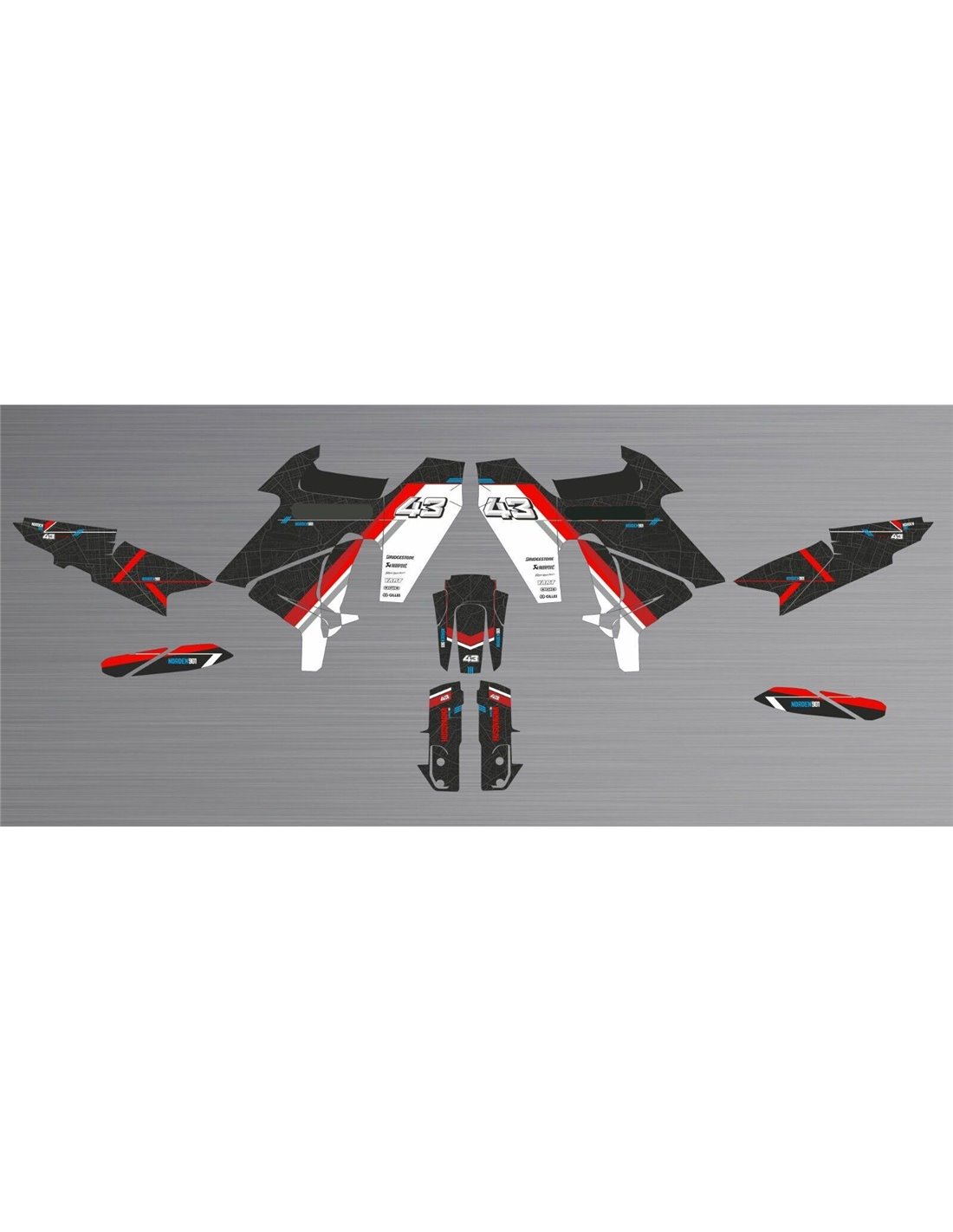 Die von uns hergestellten Aufkleber bestehen aus hochwertigen Crystalmaterialien, die einfach und perfekt an die Kunststoffe des Motorrads des Kunden angepasst werden. Die Widerstandsfähigkeit des Materials ermöglicht es, dass unsere Grafik auch unter den schwierigsten Einsatzbedingungen des Motorrads perfekt haftet. Die Installation, dank der Kanäle für die Luftabgabe, lässt Sie die Aufkleber reibungslos und ohne Blasen anbringen. Wir verwenden für den Druck Maschinen der neuesten Generation, damit wir leuchtende Farben und hochwertige Farbtöne drucken können. Wir haben die Aufkleber mit einer Schutzschicht versehen, damit sie im Laufe der Jahre immer hell bleiben und vor Wasser und Schmutz geschützt sind. Es ist möglich, die Aufkleber nach Ihren Wünschen anzupassen. Sie können Techniker-Sponsoren hinzufügen, entfernen oder ändern, eine benutzerdefinierte Startnummer oder Ihren eigenen Namen hinzufügen. Alle Änderungen können Sie während des Kaufs im Feld „Benutzeranpassung“ auf der Website angeben. Wir beschränken uns nicht nur auf die Grafiken auf unserer Website, Sie können uns per E-Mail oder WhatsApp ein Bild von einem Design senden, das wir nicht haben, damit wir Ihnen ein Angebot unterbreiten und es dann erstellen können. Durch den Kauf akzeptiert man die Verkaufsbedingungen.