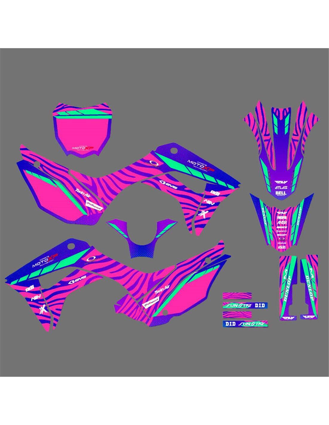 Die von uns hergestellten Aufkleber bestehen aus hochwertigen Crystalmaterialien, die einfach und perfekt an die Kunststoffe des Motorrads des Kunden angepasst werden. Die Widerstandsfähigkeit des Materials ermöglicht es, dass unsere Grafik auch unter den schwierigsten Einsatzbedingungen des Motorrads perfekt haftet. Die Installation, dank der Kanäle für die Luftabgabe, lässt Sie die Aufkleber reibungslos und ohne Blasen anbringen. Wir verwenden für den Druck Maschinen der neuesten Generation, damit wir leuchtende Farben und hochwertige Farbtöne drucken können. Wir haben die Aufkleber mit einer Schutzschicht versehen, damit sie im Laufe der Jahre immer hell bleiben und vor Wasser und Schmutz geschützt sind. Es ist möglich, die Aufkleber nach Ihren Wünschen anzupassen. Sie können Techniker-Sponsoren hinzufügen, entfernen oder ändern, eine benutzerdefinierte Startnummer oder Ihren eigenen Namen hinzufügen. Alle Änderungen können Sie während des Kaufs im Feld „Benutzeranpassung“ auf der Website angeben. Wir beschränken uns nicht nur auf die Grafiken auf unserer Website, Sie können uns per E-Mail oder WhatsApp ein Bild von einem Design senden, das wir nicht haben, damit wir Ihnen ein Angebot unterbreiten und es dann erstellen können. Durch den Kauf akzeptiert man die Verkaufsbedingungen.