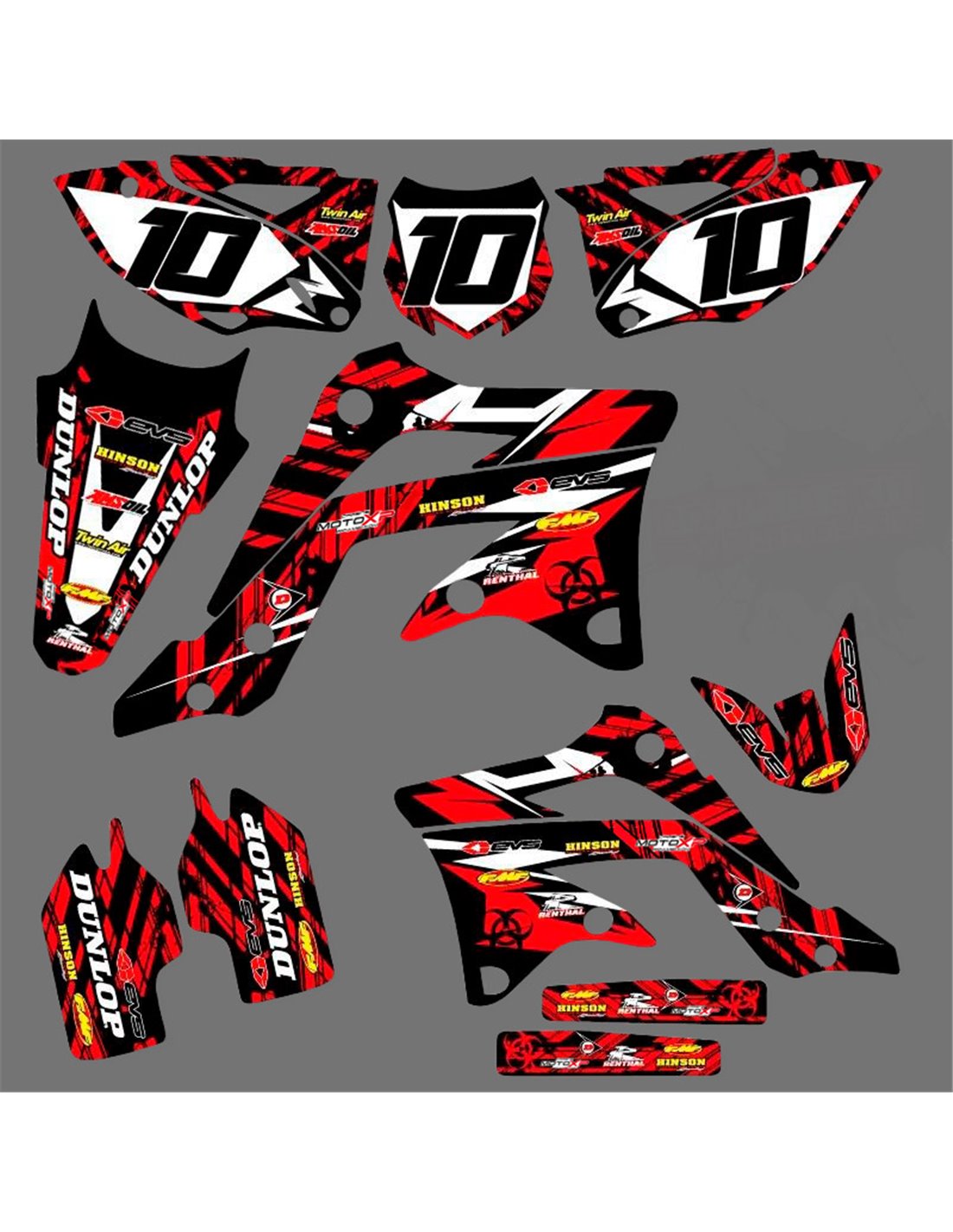 Die von uns hergestellten Aufkleber bestehen aus hochwertigen Crystalmaterialien, die einfach und perfekt an die Kunststoffe des Motorrads des Kunden angepasst werden. Die Widerstandsfähigkeit des Materials ermöglicht es, dass unsere Grafik auch unter den schwierigsten Einsatzbedingungen des Motorrads perfekt haftet. Die Installation, dank der Kanäle für die Luftabgabe, lässt Sie die Aufkleber reibungslos und ohne Blasen anbringen. Wir verwenden für den Druck Maschinen der neuesten Generation, damit wir leuchtende Farben und hochwertige Farbtöne drucken können. Wir haben die Aufkleber mit einer Schutzschicht versehen, damit sie im Laufe der Jahre immer hell bleiben und vor Wasser und Schmutz geschützt sind. Es ist möglich, die Aufkleber nach Ihren Wünschen anzupassen. Sie können Techniker-Sponsoren hinzufügen, entfernen oder ändern, eine benutzerdefinierte Startnummer oder Ihren eigenen Namen hinzufügen. Alle Änderungen können Sie während des Kaufs im Feld „Benutzeranpassung“ auf der Website angeben. Wir beschränken uns nicht nur auf die Grafiken auf unserer Website, Sie können uns per E-Mail oder WhatsApp ein Bild von einem Design senden, das wir nicht haben, damit wir Ihnen ein Angebot unterbreiten und es dann erstellen können. Durch den Kauf akzeptiert man die Verkaufsbedingungen.