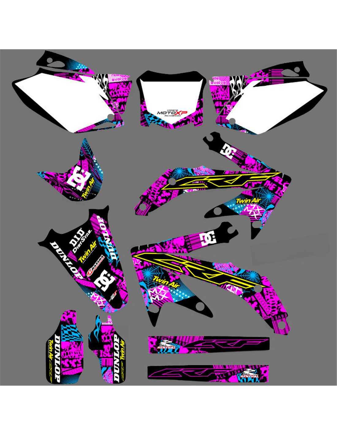 Die von uns hergestellten Aufkleber bestehen aus hochwertigen Crystalmaterialien, die einfach und perfekt an die Kunststoffe des Motorrads des Kunden angepasst werden. Die Widerstandsfähigkeit des Materials ermöglicht es, dass unsere Grafik auch unter den schwierigsten Einsatzbedingungen des Motorrads perfekt haftet. Die Installation, dank der Kanäle für die Luftabgabe, lässt Sie die Aufkleber reibungslos und ohne Blasen anbringen. Wir verwenden für den Druck Maschinen der neuesten Generation, damit wir leuchtende Farben und hochwertige Farbtöne drucken können. Wir haben die Aufkleber mit einer Schutzschicht versehen, damit sie im Laufe der Jahre immer hell bleiben und vor Wasser und Schmutz geschützt sind. Es ist möglich, die Aufkleber nach Ihren Wünschen anzupassen. Sie können Techniker-Sponsoren hinzufügen, entfernen oder ändern, eine benutzerdefinierte Startnummer oder Ihren eigenen Namen hinzufügen. Alle Änderungen können Sie während des Kaufs im Feld „Benutzeranpassung“ auf der Website angeben. Wir beschränken uns nicht nur auf die Grafiken auf unserer Website, Sie können uns per E-Mail oder WhatsApp ein Bild von einem Design senden, das wir nicht haben, damit wir Ihnen ein Angebot unterbreiten und es dann erstellen können. Durch den Kauf akzeptiert man die Verkaufsbedingungen.
