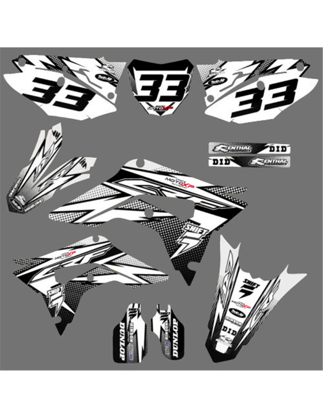Die von uns hergestellten Aufkleber bestehen aus hochwertigen Crystalmaterialien, die einfach und perfekt an die Kunststoffe des Motorrads des Kunden angepasst werden. Die Widerstandsfähigkeit des Materials ermöglicht es, dass unsere Grafik auch unter den schwierigsten Einsatzbedingungen des Motorrads perfekt haftet. Die Installation, dank der Kanäle für die Luftabgabe, lässt Sie die Aufkleber reibungslos und ohne Blasen anbringen. Wir verwenden für den Druck Maschinen der neuesten Generation, damit wir leuchtende Farben und hochwertige Farbtöne drucken können. Wir haben die Aufkleber mit einer Schutzschicht versehen, damit sie im Laufe der Jahre immer hell bleiben und vor Wasser und Schmutz geschützt sind. Es ist möglich, die Aufkleber nach Ihren Wünschen anzupassen. Sie können Techniker-Sponsoren hinzufügen, entfernen oder ändern, eine benutzerdefinierte Startnummer oder Ihren eigenen Namen hinzufügen. Alle Änderungen können Sie während des Kaufs im Feld „Benutzeranpassung“ auf der Website angeben. Wir beschränken uns nicht nur auf die Grafiken auf unserer Website, Sie können uns per E-Mail oder WhatsApp ein Bild von einem Design senden, das wir nicht haben, damit wir Ihnen ein Angebot unterbreiten und es dann erstellen können. Durch den Kauf akzeptiert man die Verkaufsbedingungen.
