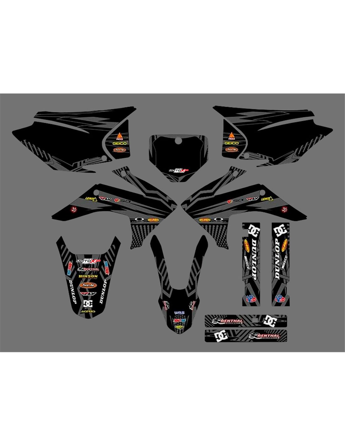 Die von uns hergestellten Aufkleber bestehen aus hochwertigen Crystalmaterialien, die einfach und perfekt an die Kunststoffe des Motorrads des Kunden angepasst werden. Die Widerstandsfähigkeit des Materials ermöglicht es, dass unsere Grafik auch unter den schwierigsten Einsatzbedingungen des Motorrads perfekt haftet. Die Installation, dank der Kanäle für die Luftabgabe, lässt Sie die Aufkleber reibungslos und ohne Blasen anbringen. Wir verwenden für den Druck Maschinen der neuesten Generation, damit wir leuchtende Farben und hochwertige Farbtöne drucken können. Wir haben die Aufkleber mit einer Schutzschicht versehen, damit sie im Laufe der Jahre immer hell bleiben und vor Wasser und Schmutz geschützt sind. Es ist möglich, die Aufkleber nach Ihren Wünschen anzupassen. Sie können Techniker-Sponsoren hinzufügen, entfernen oder ändern, eine benutzerdefinierte Startnummer oder Ihren eigenen Namen hinzufügen. Alle Änderungen können Sie während des Kaufs im Feld „Benutzeranpassung“ auf der Website angeben. Wir beschränken uns nicht nur auf die Grafiken auf unserer Website, Sie können uns per E-Mail oder WhatsApp ein Bild von einem Design senden, das wir nicht haben, damit wir Ihnen ein Angebot unterbreiten und es dann erstellen können. Durch den Kauf akzeptiert man die Verkaufsbedingungen.