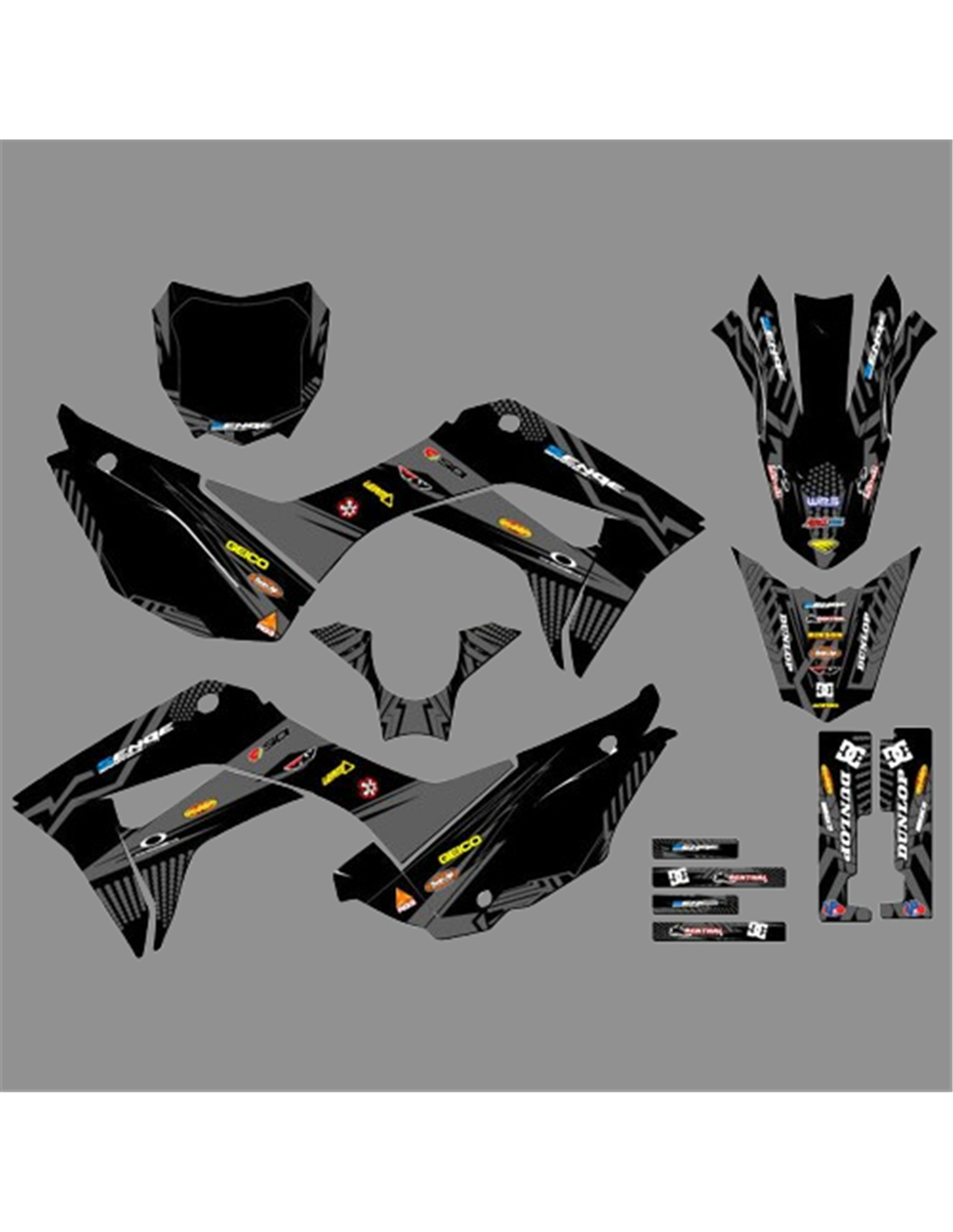 Die von uns hergestellten Aufkleber bestehen aus hochwertigen Crystalmaterialien, die einfach und perfekt an die Kunststoffe des Motorrads des Kunden angepasst werden. Die Widerstandsfähigkeit des Materials ermöglicht es, dass unsere Grafik auch unter den schwierigsten Einsatzbedingungen des Motorrads perfekt haftet. Die Installation, dank der Kanäle für die Luftabgabe, lässt Sie die Aufkleber reibungslos und ohne Blasen anbringen. Wir verwenden für den Druck Maschinen der neuesten Generation, damit wir leuchtende Farben und hochwertige Farbtöne drucken können. Wir haben die Aufkleber mit einer Schutzschicht versehen, damit sie im Laufe der Jahre immer hell bleiben und vor Wasser und Schmutz geschützt sind. Es ist möglich, die Aufkleber nach Ihren Wünschen anzupassen. Sie können Techniker-Sponsoren hinzufügen, entfernen oder ändern, eine benutzerdefinierte Startnummer oder Ihren eigenen Namen hinzufügen. Alle Änderungen können Sie während des Kaufs im Feld „Benutzeranpassung“ auf der Website angeben. Wir beschränken uns nicht nur auf die Grafiken auf unserer Website, Sie können uns per E-Mail oder WhatsApp ein Bild von einem Design senden, das wir nicht haben, damit wir Ihnen ein Angebot unterbreiten und es dann erstellen können. Durch den Kauf akzeptiert man die Verkaufsbedingungen.
