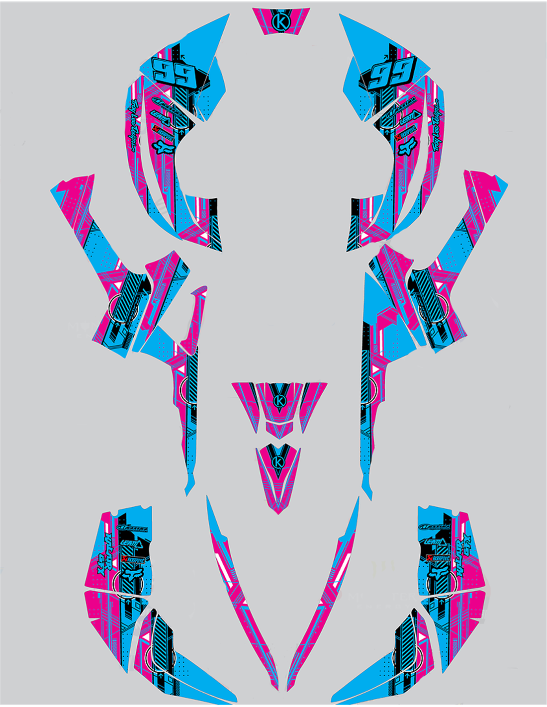 Die von uns hergestellten Aufkleber bestehen aus hochwertigen Crystalmaterialien, die einfach und perfekt an die Kunststoffe des Motorrads des Kunden angepasst werden. Die Widerstandsfähigkeit des Materials ermöglicht es, dass unsere Grafik auch unter den schwierigsten Einsatzbedingungen des Motorrads perfekt haftet. Die Installation, dank der Kanäle für die Luftabgabe, lässt Sie die Aufkleber reibungslos und ohne Blasen anbringen. Wir verwenden für den Druck Maschinen der neuesten Generation, damit wir leuchtende Farben und hochwertige Farbtöne drucken können. Wir haben die Aufkleber mit einer Schutzschicht versehen, damit sie im Laufe der Jahre immer hell bleiben und vor Wasser und Schmutz geschützt sind. Es ist möglich, die Aufkleber nach Ihren Wünschen anzupassen. Sie können Techniker-Sponsoren hinzufügen, entfernen oder ändern, eine benutzerdefinierte Startnummer oder Ihren eigenen Namen hinzufügen. Alle Änderungen können Sie während des Kaufs im Feld „Benutzeranpassung“ auf der Website angeben. Wir beschränken uns nicht nur auf die Grafiken auf unserer Website, Sie können uns per E-Mail oder WhatsApp ein Bild von einem Design senden, das wir nicht haben, damit wir Ihnen ein Angebot unterbreiten und es dann erstellen können. Durch den Kauf akzeptiert man die Verkaufsbedingungen.