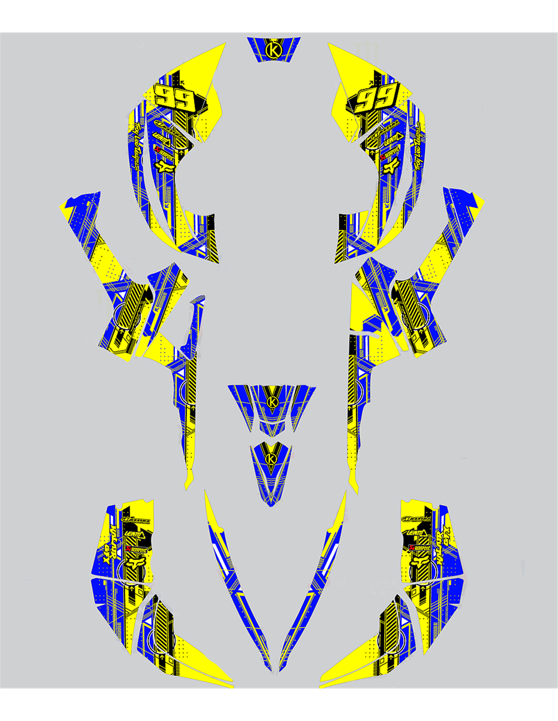 Die von uns hergestellten Aufkleber bestehen aus hochwertigen Crystalmaterialien, die einfach und perfekt an die Kunststoffe des Motorrads des Kunden angepasst werden. Die Widerstandsfähigkeit des Materials ermöglicht es, dass unsere Grafik auch unter den schwierigsten Einsatzbedingungen des Motorrads perfekt haftet. Die Installation, dank der Kanäle für die Luftabgabe, lässt Sie die Aufkleber reibungslos und ohne Blasen anbringen. Wir verwenden für den Druck Maschinen der neuesten Generation, damit wir leuchtende Farben und hochwertige Farbtöne drucken können. Wir haben die Aufkleber mit einer Schutzschicht versehen, damit sie im Laufe der Jahre immer hell bleiben und vor Wasser und Schmutz geschützt sind. Es ist möglich, die Aufkleber nach Ihren Wünschen anzupassen. Sie können Techniker-Sponsoren hinzufügen, entfernen oder ändern, eine benutzerdefinierte Startnummer oder Ihren eigenen Namen hinzufügen. Alle Änderungen können Sie während des Kaufs im Feld „Benutzeranpassung“ auf der Website angeben. Wir beschränken uns nicht nur auf die Grafiken auf unserer Website, Sie können uns per E-Mail oder WhatsApp ein Bild von einem Design senden, das wir nicht haben, damit wir Ihnen ein Angebot unterbreiten und es dann erstellen können. Durch den Kauf akzeptiert man die Verkaufsbedingungen.