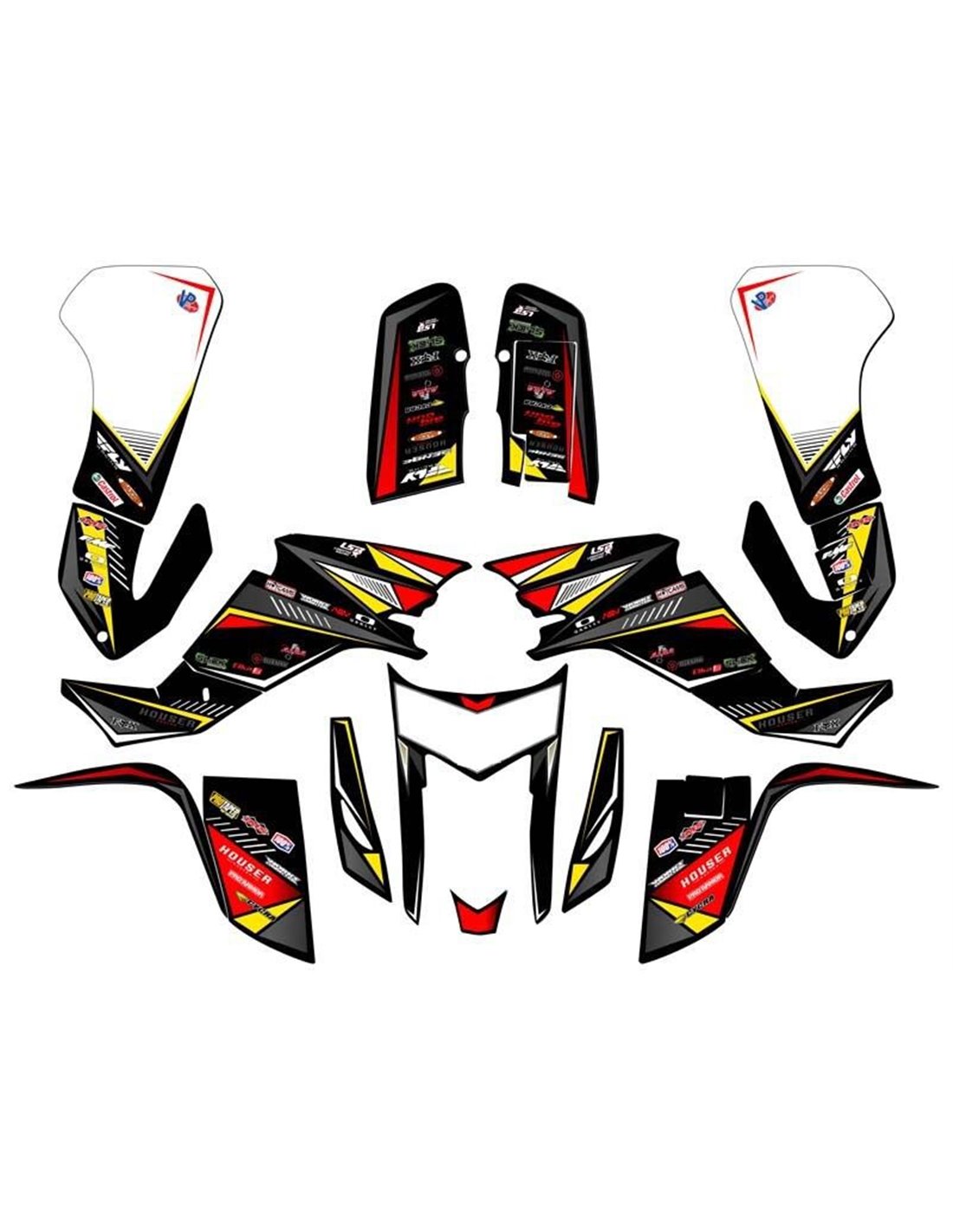 Die von uns hergestellten Aufkleber bestehen aus hochwertigen Crystalmaterialien, die einfach und perfekt an die Kunststoffe des Motorrads des Kunden angepasst werden. Die Widerstandsfähigkeit des Materials ermöglicht es, dass unsere Grafik auch unter den schwierigsten Einsatzbedingungen des Motorrads perfekt haftet. Die Installation, dank der Kanäle für die Luftabgabe, lässt Sie die Aufkleber reibungslos und ohne Blasen anbringen. Wir verwenden für den Druck Maschinen der neuesten Generation, damit wir leuchtende Farben und hochwertige Farbtöne drucken können. Wir haben die Aufkleber mit einer Schutzschicht versehen, damit sie im Laufe der Jahre immer hell bleiben und vor Wasser und Schmutz geschützt sind. Es ist möglich, die Aufkleber nach Ihren Wünschen anzupassen. Sie können Techniker-Sponsoren hinzufügen, entfernen oder ändern, eine benutzerdefinierte Startnummer oder Ihren eigenen Namen hinzufügen. Alle Änderungen können Sie während des Kaufs im Feld „Benutzeranpassung“ auf der Website angeben. Wir beschränken uns nicht nur auf die Grafiken auf unserer Website, Sie können uns per E-Mail oder WhatsApp ein Bild von einem Design senden, das wir nicht haben, damit wir Ihnen ein Angebot unterbreiten und es dann erstellen können. Durch den Kauf akzeptiert man die Verkaufsbedingungen.