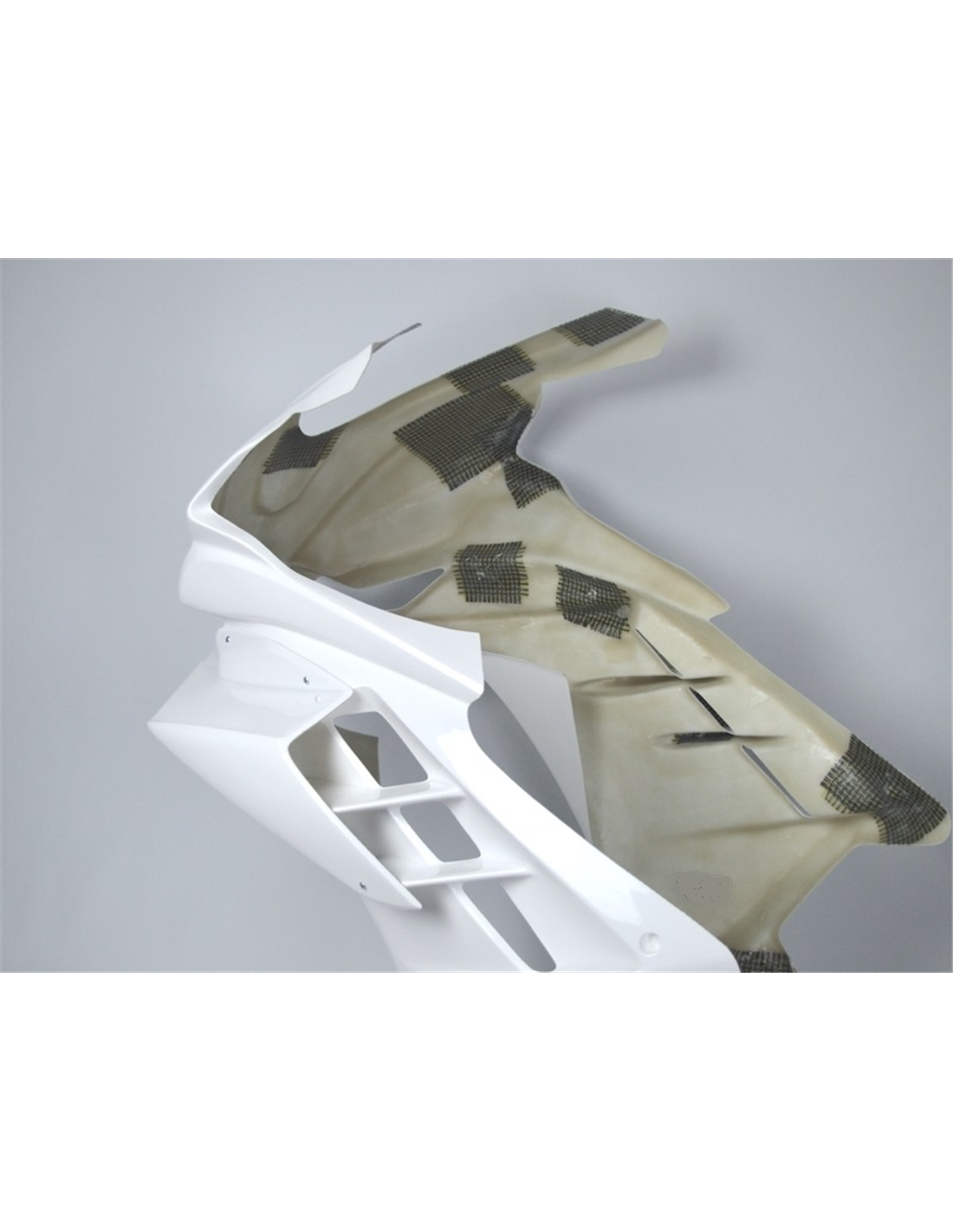 Unsere Rennverkleidung sind auf Fiberglas, sie sind auf Carbon und Kevlar in Stresszonen verstärkt. Unsere Unterverkleidung ist eingeschlossen, so die Verkleidung sind für verschiedene Meisterschaften und für die Amateur-Nutzung auf den Rennstrecken genehmigt. Wir markieren wo Sie die Löcher bohren sollten, so Sie können das Loch nach der Abmessung der Schraube, die Sie verwenden möchten, machen.