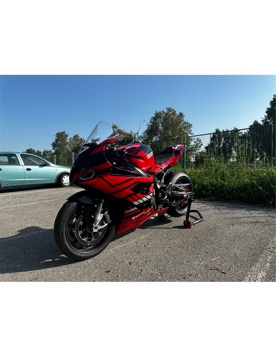 Wirtschaftlich: Wir verwenden nicht die Originalfarbe und die vom Kunden gewählte Grafik befindet sich unter zwei Schichten Klarlack. Die Aufkleber werden mit 8-Farben-Druckern gedruckt, was ihnen einen tadellosen Glanz und Farbtöne verleiht. Wir lackieren auch die Innenseite der Frontverkleidung.