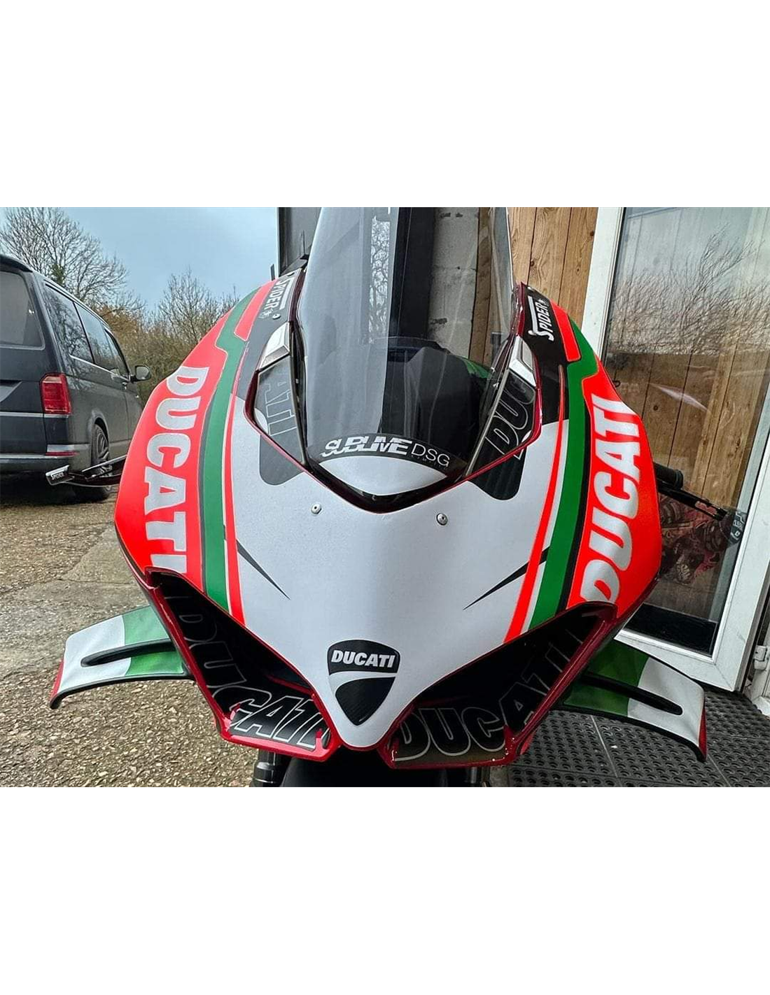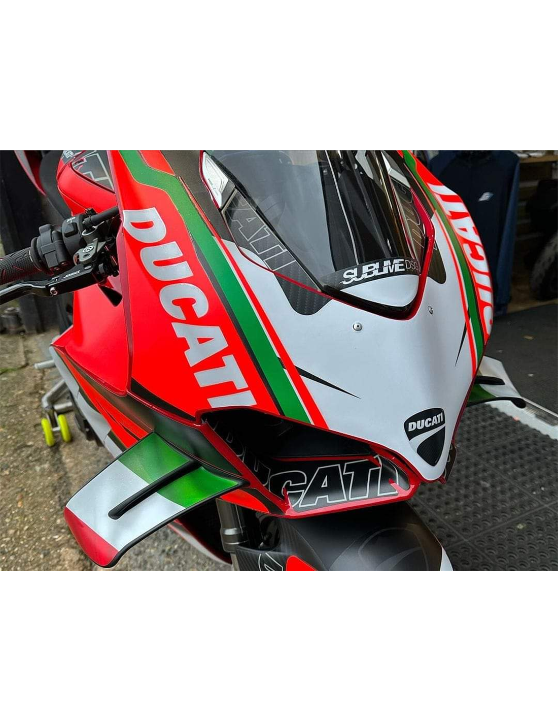 Elite: Wir verwenden kompatible Farben mit dem Originaltank des Motorrads (z. B. Ducatis Rot). Die Aufkleber werden mit 8-Farben-Druckern gedruckt, was ihnen einen tadellosen Glanz und Farbtöne verleiht. Die gesamte Grafik befindet sich unter drei Schichten Klarlack, um die Farben der Verkleidung auch im Laufe der Zeit leuchtend zu halten. Wir lackieren auch den gesamten Verkleidungssatz innen.