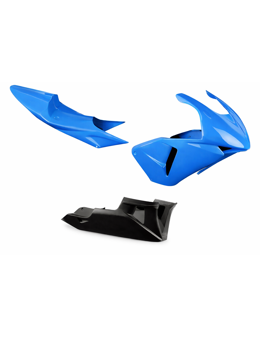 Die Verkleidungssatz enthält: Frontverkleidung, Seitenverkleidung rechts und links, geschlossene Unterverkleidung und zugelassen für die Rennstrecke, Heck (Tankabdeckung ist nicht eingeschlossen).