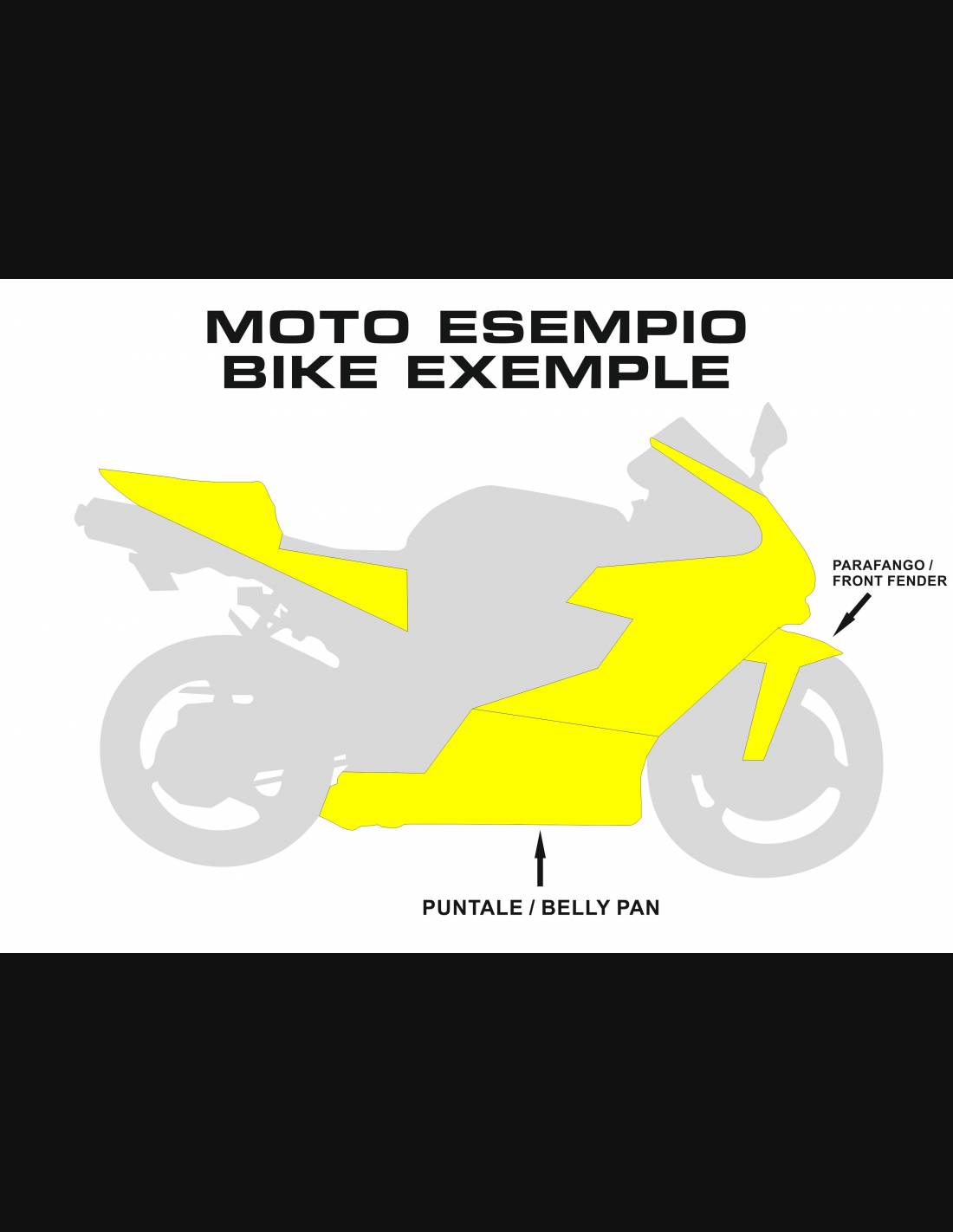 Die Verkleidungssatz enthält: Frontverkleidung, Seitenverkleidung rechts und links, geschlossene Unterverkleidung und zugelassen für die Rennstrecke, Heck (Tankabdeckung ist nicht eingeschlossen).