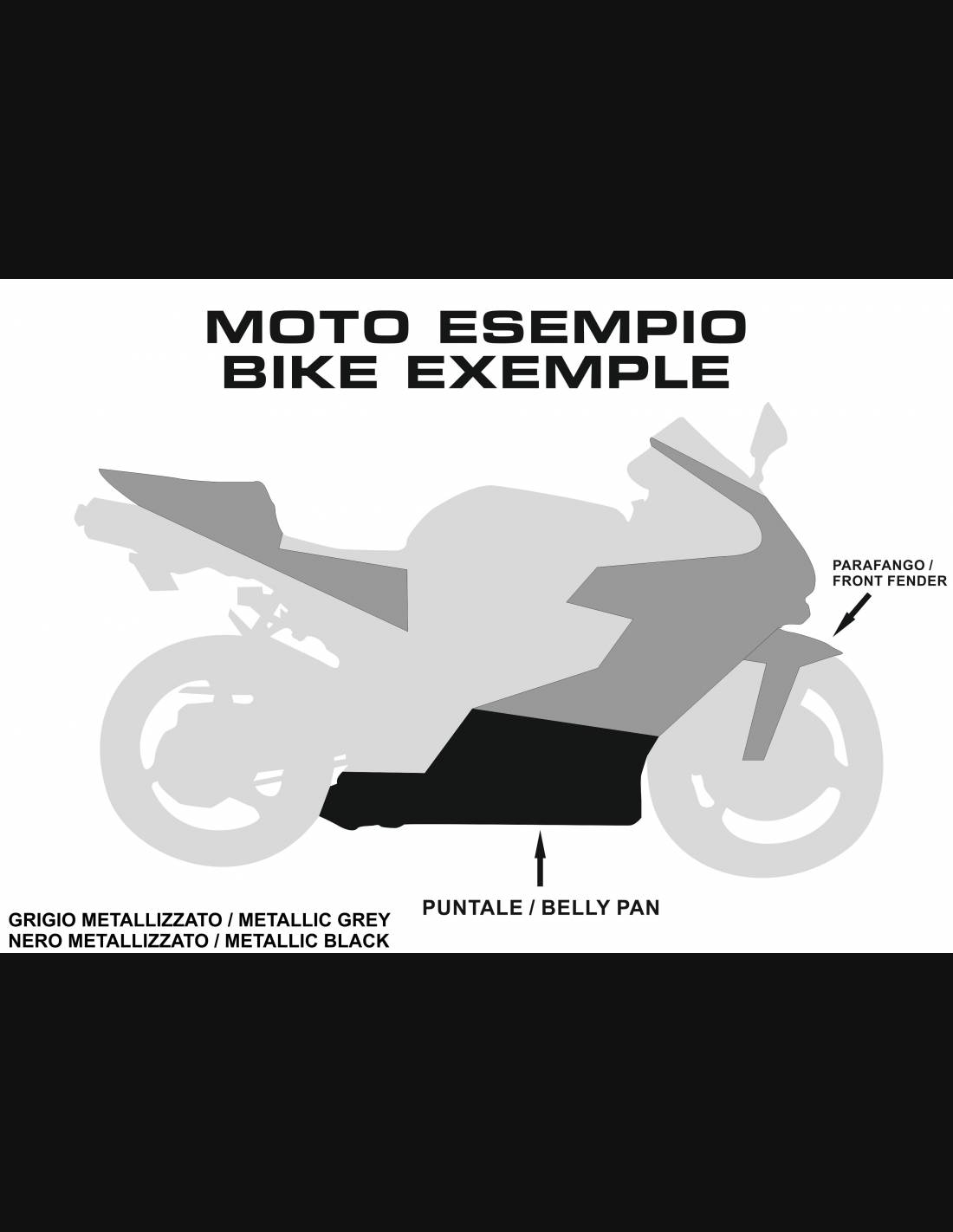 Die Verkleidungssatz enthält: Frontverkleidung, Seitenverkleidung rechts und links, Unterverkleidung, Heck (Tankabdeckung ist nicht eingeschlossen).