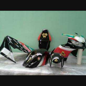 Die Verkleidungssatz enthält: Frontverkleidung, Seitenverkleidung rechts und links, Unterverkleidung, Heck und Kotflügel vorne (Tankabdeckung ist nicht eingeschlossen).