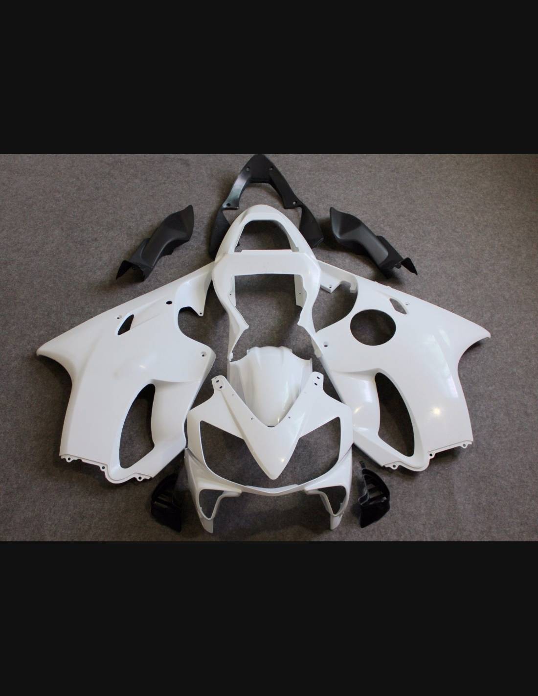 El kit de carenados incluye: carenado frontal, laterales de derecha y izquierda, quilla, colin, guardabarros delantero y todos los eventuales plasticos interiores negros.