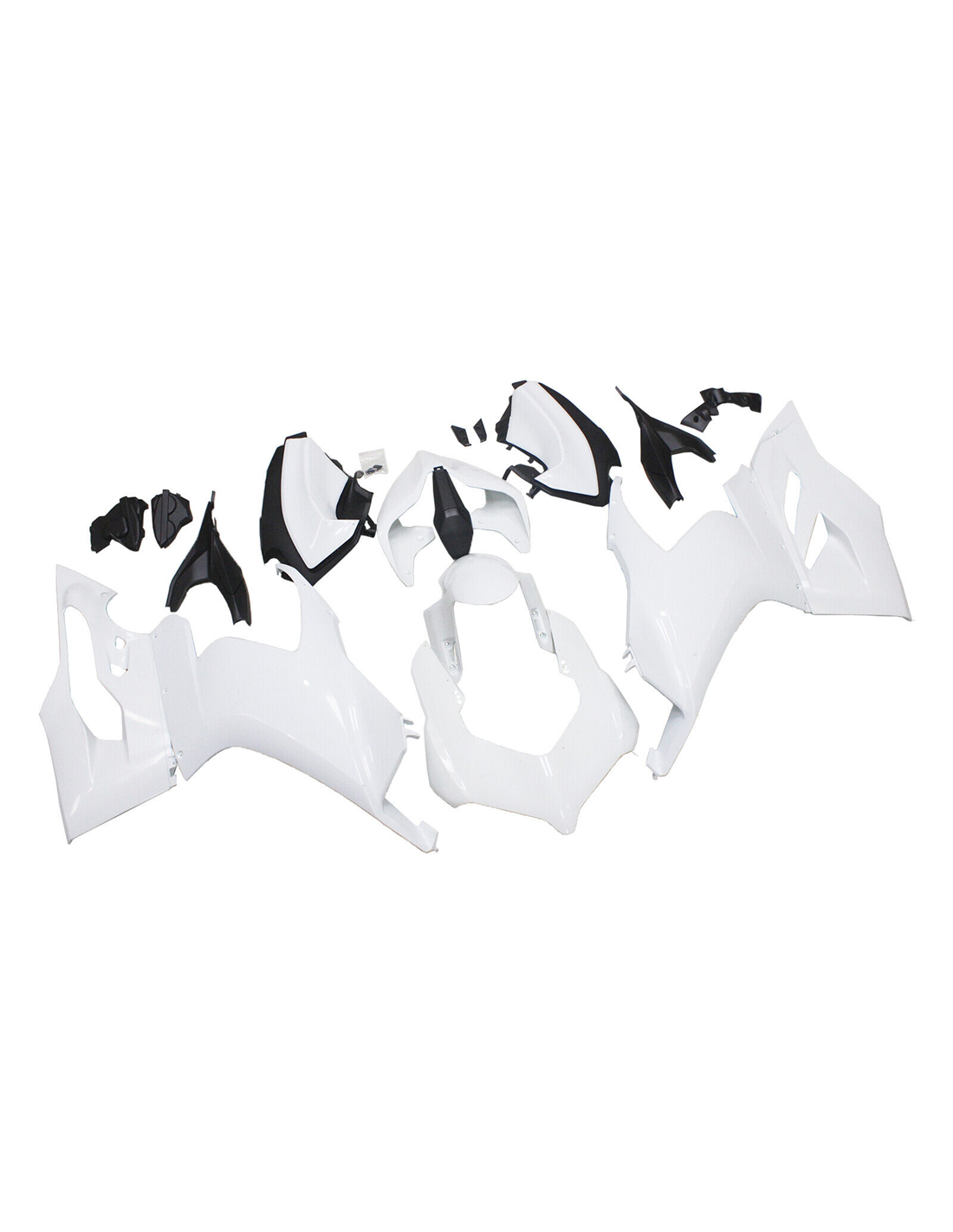 El kit de carenados incluye: carenado frontal, laterales de derecha y izquierda, quilla, colin, guardabarros delantero y todos los eventuales plasticos interiores negros.