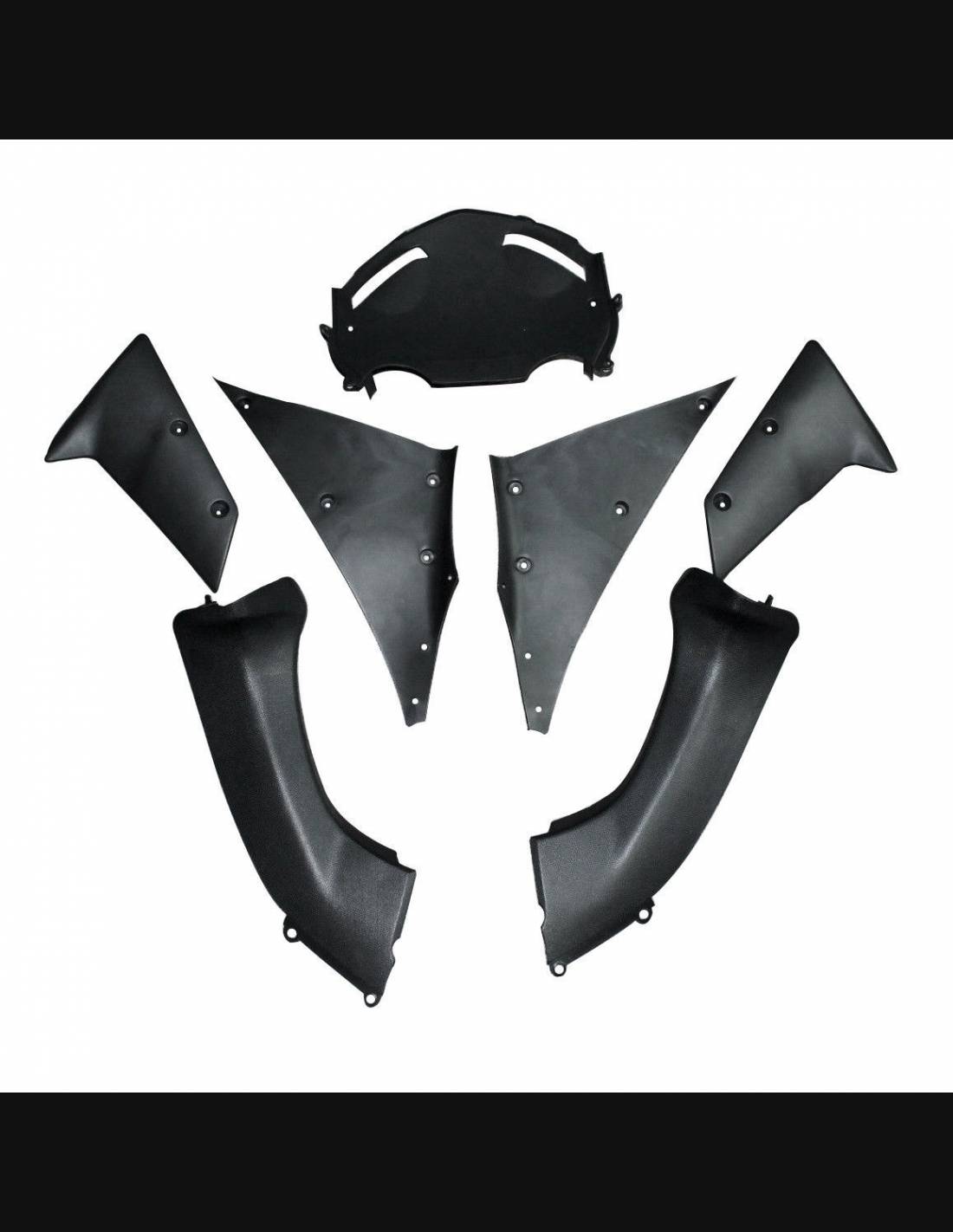 El kit de carenados incluye: carenado frontal, laterales de derecha y izquierda, quilla, colin, guardabarros delantero y todos los eventuales plasticos interiores negros.
