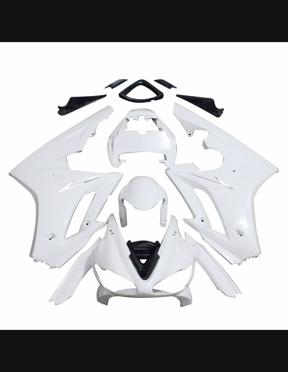 El kit de carenados incluye: carenado frontal, laterales de derecha y izquierda, quilla, colin, guardabarros delantero y todos los eventuales plasticos interiores negros.