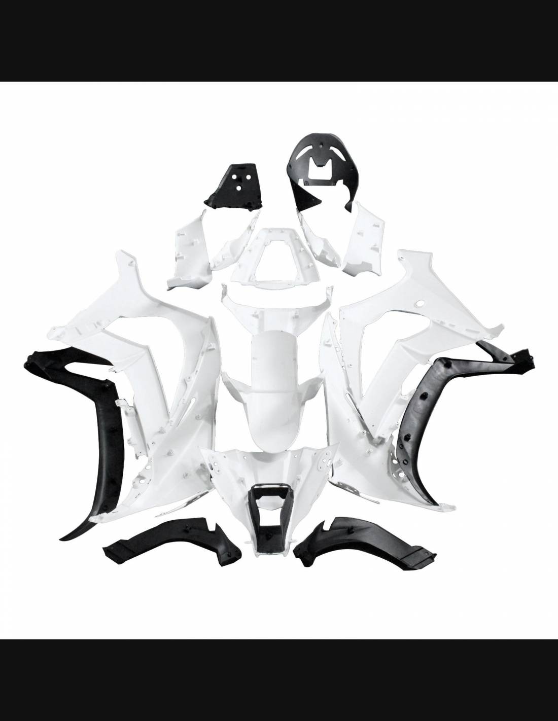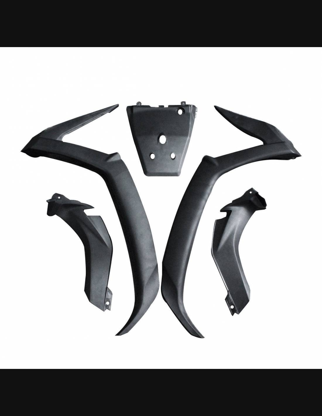El kit de carenados incluye: carenado frontal, laterales de derecha y izquierda, quilla, colin, guardabarros delantero y todos los eventuales plasticos interiores negros.