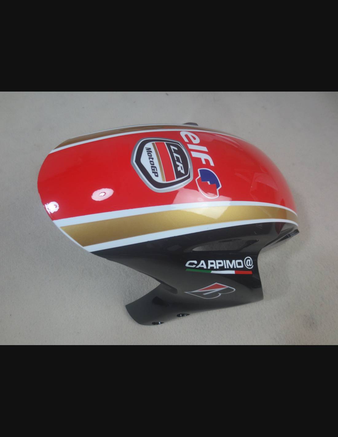 Elite: utilizamos productos de la RM, PPG con una calidad claramente superior con colores metálicos como el original, o transparente metálico; los adhesivos están impresos con varios tonos gracias a nuestro plóter de corte y de impresión de 8 colores con tintas ECO-SOL MAX2 con una alta calidad y resistencia a la luz solar hasta 7 años garantizados por la empresa APA Italia que nos dalos materiales necesarios para el corte y la impresión. Los adhesivos están cubiertos por tres capas de transparente y eso los hace brillar durante 7 años. Además todo el carenado está pintado en el interior.
