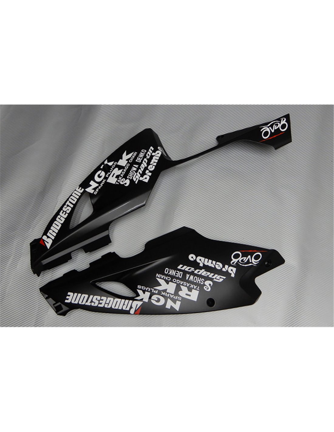 Nuestros carenados para la calle son en ABS (plasticos) y son compatibles con los carenados originales. Los vendemos ya perforados y con todos los puntos de montaje interiores, asì podemos garantizar una instalacion simple y sin modificaciones sobre la moto del cliente. Tambien son compatibles con los tornillos y otros accesorios originales. En el precio se incluye la proteccion contra el calor, que se tiene que pegar en la quilla.