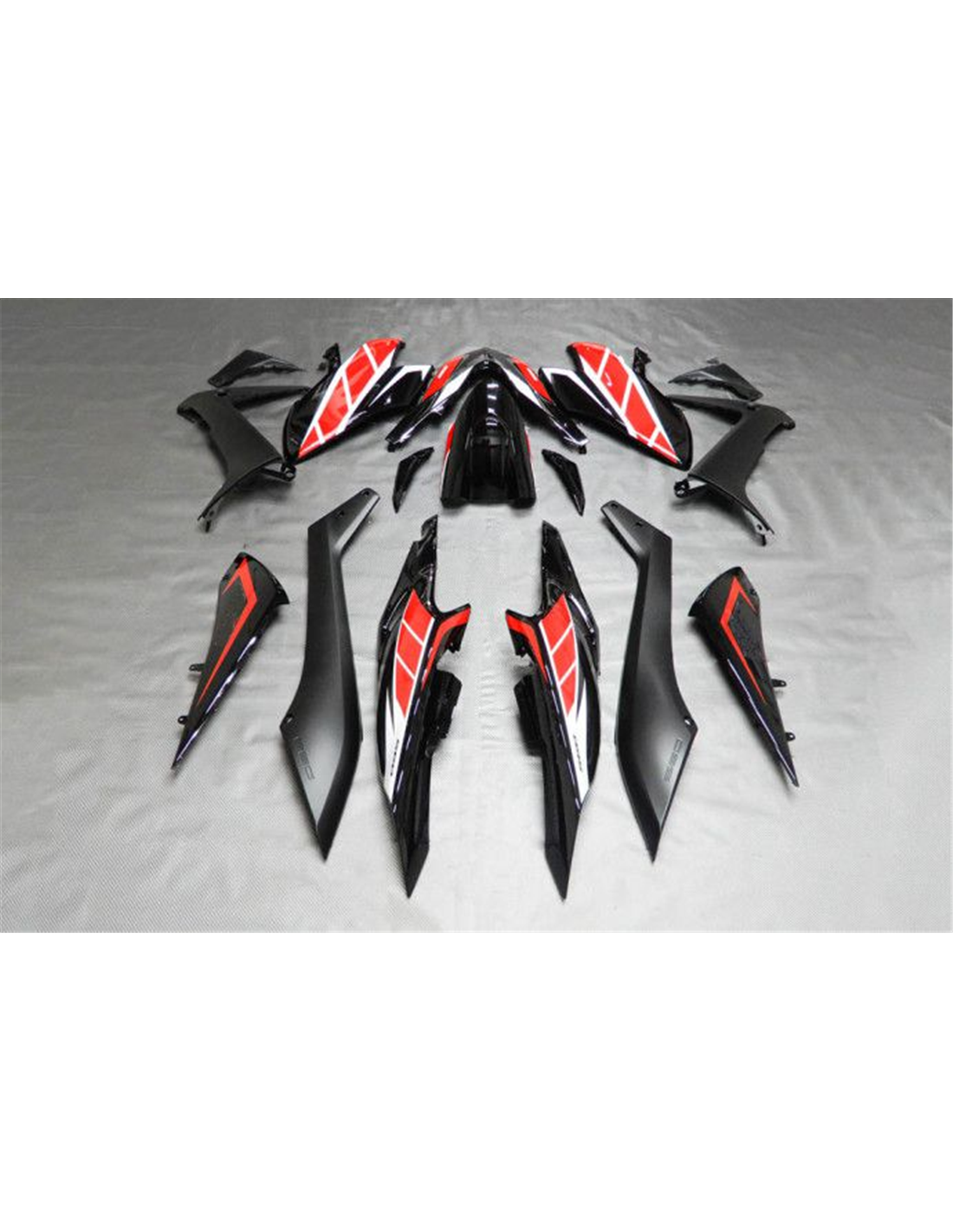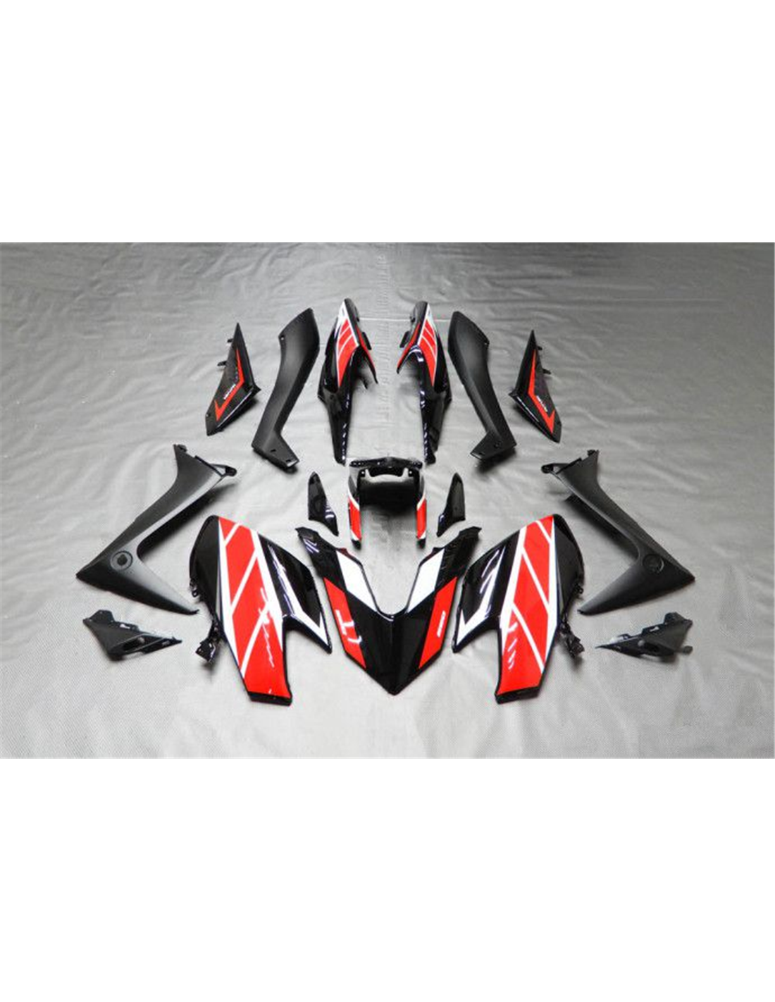 El kit de carenados incluye: carenado frontal, laterales de derecha y izquierda, quilla, colin, guardabarros delantero y todos los eventuales plasticos interiores negros.