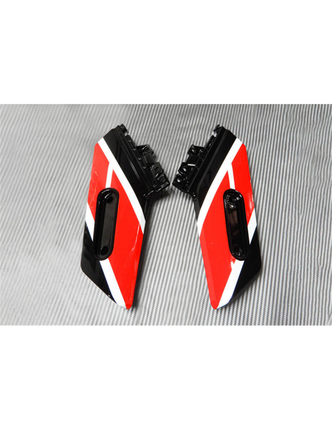 Nuestros carenados para la calle son en ABS (plasticos) y son compatibles con los carenados originales. Los vendemos ya perforados y con todos los puntos de montaje interiores, asì podemos garantizar una instalacion simple y sin modificaciones sobre la moto del cliente. Tambien son compatibles con los tornillos y otros accesorios originales. En el precio se incluye la proteccion contra el calor, que se tiene que pegar en la quilla.
