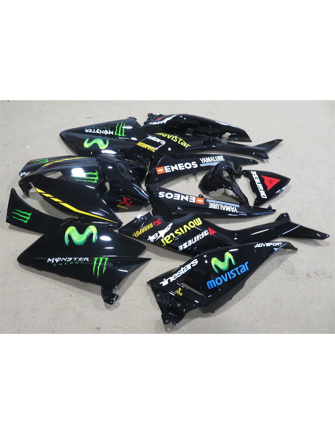 El kit de carenados incluye: carenado frontal, laterales de derecha y izquierda, quilla, colin, guardabarros delantero y todos los eventuales plasticos interiores negros.