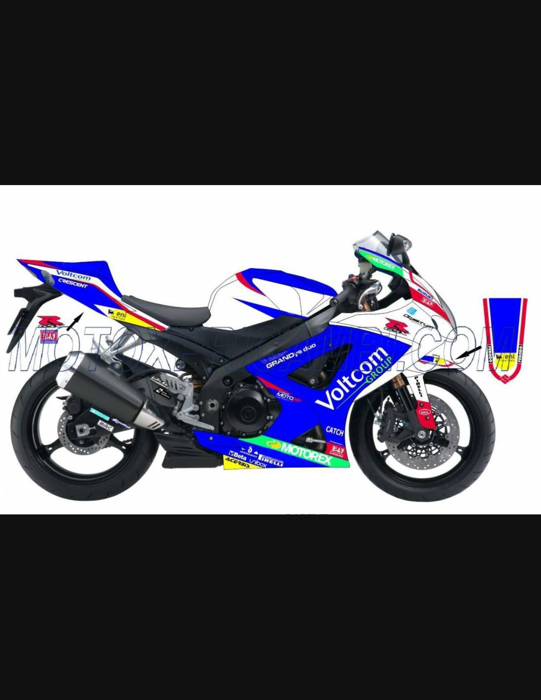 Elite: utilizamos productos de la RM, PPG con una calidad claramente superior con colores metálicos como el original, o transparente metálico; los adhesivos están impresos con varios tonos gracias a nuestro plóter de corte y de impresión de 8 colores con tintas ECO-SOL MAX2 con una alta calidad y resistencia a la luz solar hasta 7 años garantizados por la empresa APA Italia que nos dalos materiales necesarios para el corte y la impresión. Los adhesivos están cubiertos por tres capas de transparente y eso los hace brillar durante 7 años. Además todo el carenado está pintado en el interior.